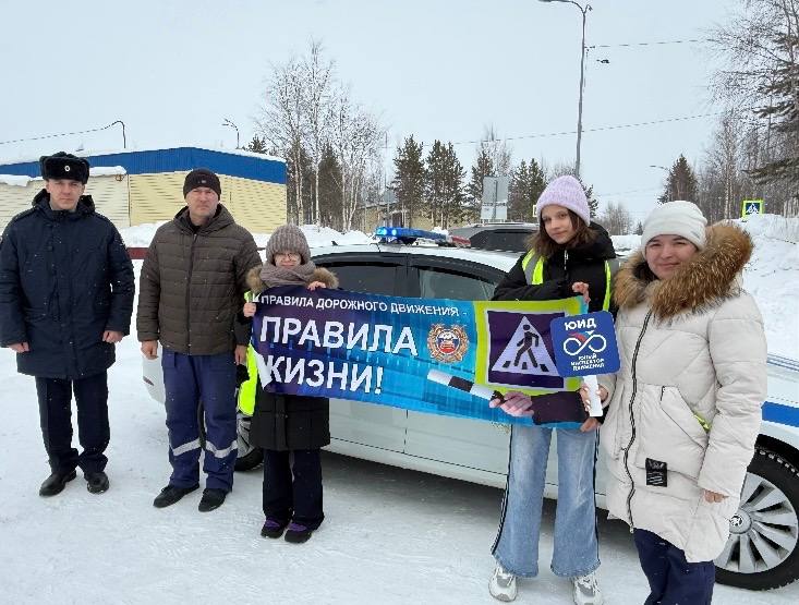 Автоинспекторы Муравленко совместно с юными инспекторами движения провели профилактическую акцию, направленную на повышение безопасности на дорогах города