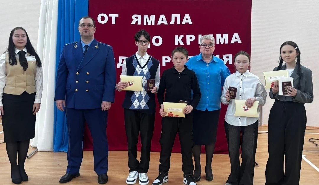 В связи с празднованием Дня воссоединения Крыма с Россией и в целях правовой грамотности молодежи и способствования ее патриотическому воспитанию прокурором Приуральского района Андреем Колочевым принято участие в торжественной церемонии вручении паспортов Российской Федерации 14-летним гражданам, ребятам адресованы теплые напутственные слова.