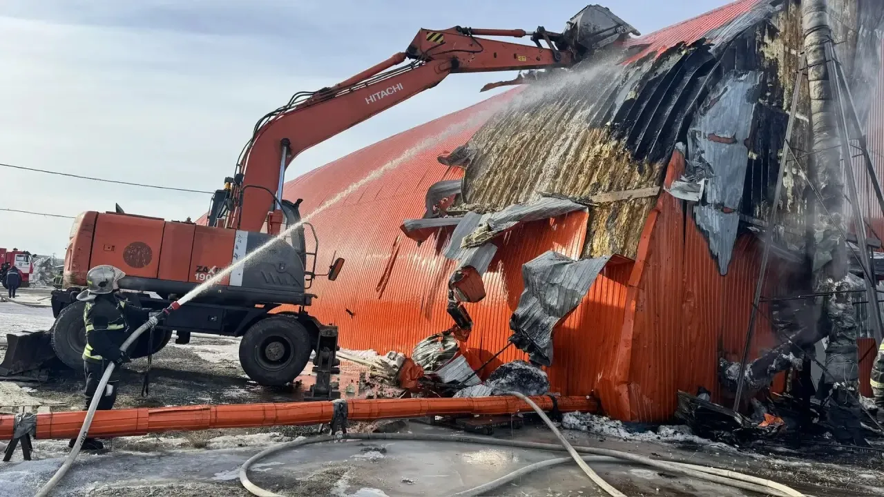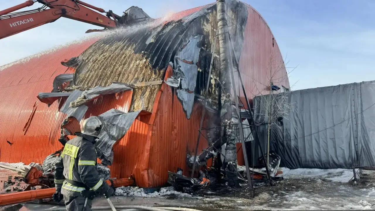 Через минуту пожарные были на месте вызова. На момент прибытия наблюдалось тление утеплителя на площади 15 квадратных метров,здание арочного типа (ангар ) 2-х этажное, размерами 40х20.