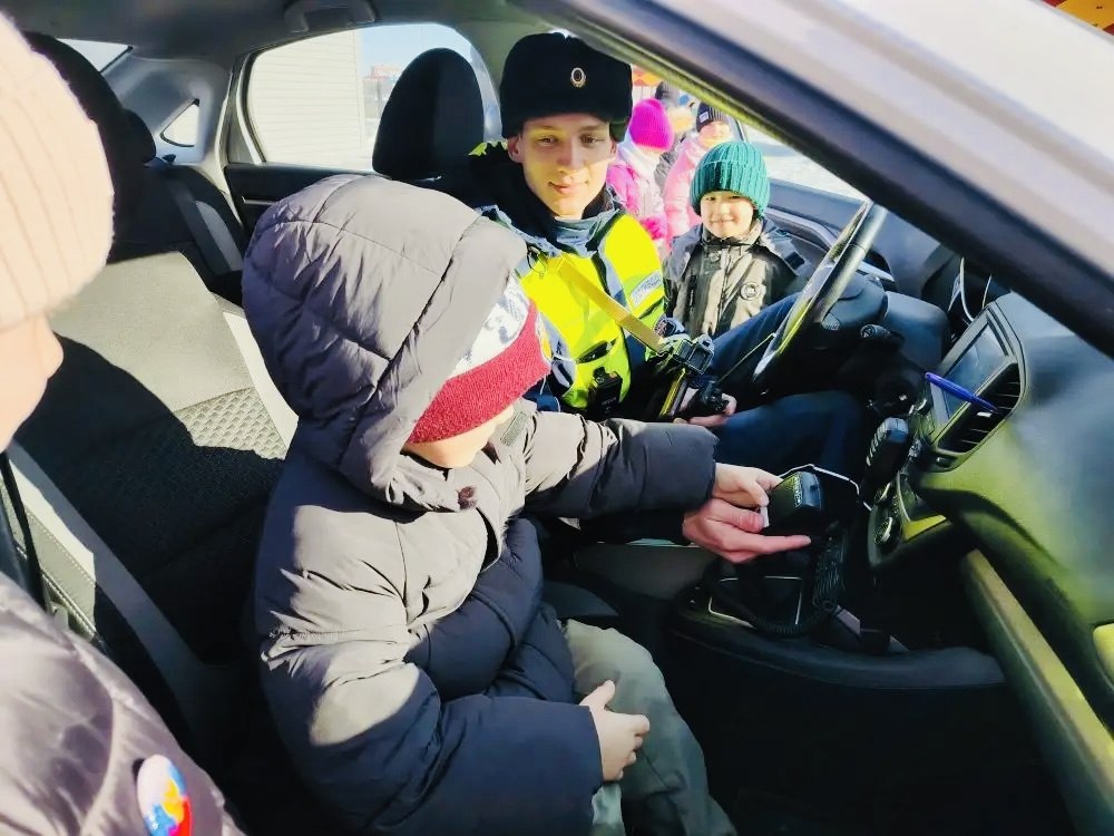 Больше всего детям понравилось осматривать патрульный автомобиль изнутри. Они с восторгом разглядывали салон, а потом засыпали полицейских вопросами: как управлять машиной в метель или дождь, как помогать водителям и пешеходам.