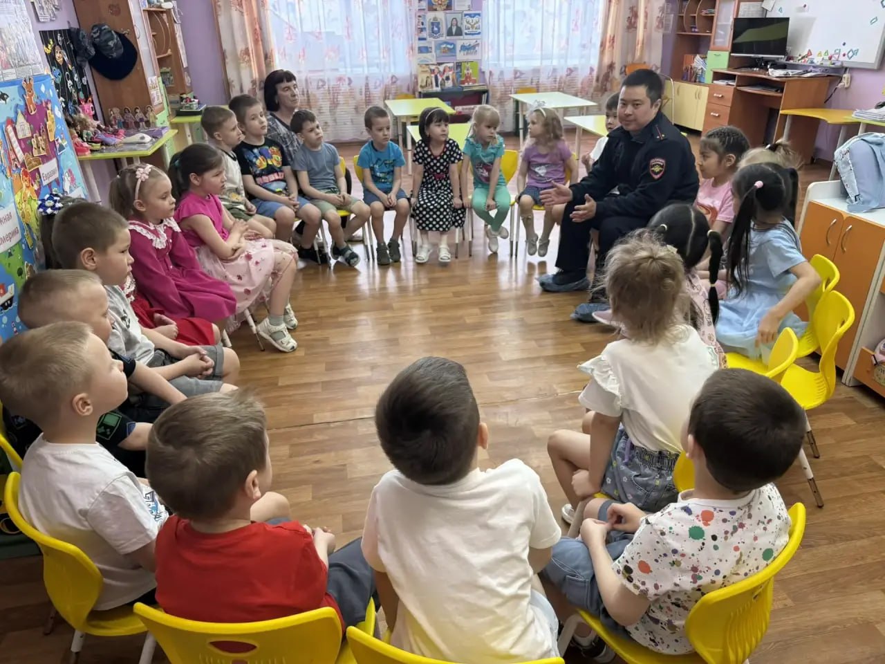 Сотрудники Госавтоинспекции Лабытнанги провели в детском саду «Едэйко» занятие по дорожной безопасности.