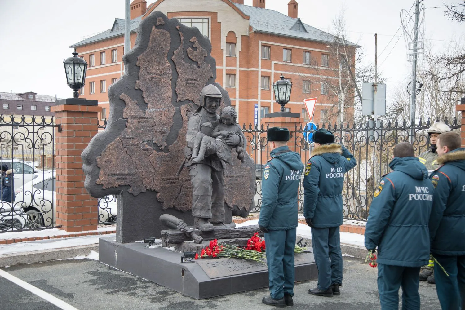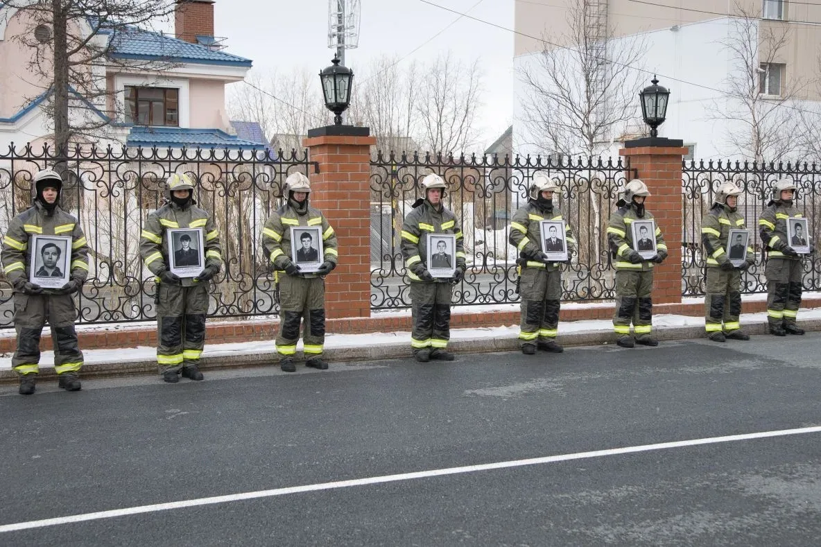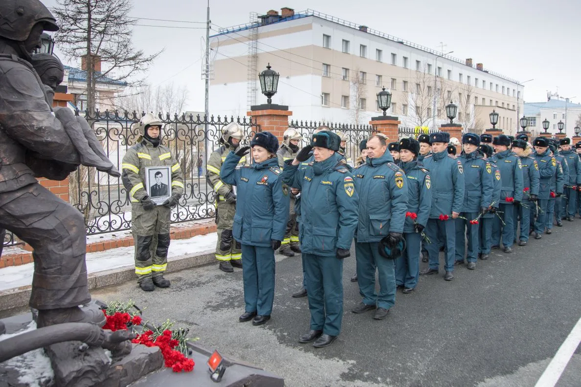 В завершении церемонии под звуки метронома личный состав почтил память ямальских коллег и возложили цветы к монументу «Героям мирного времени-пожарным Ямала».