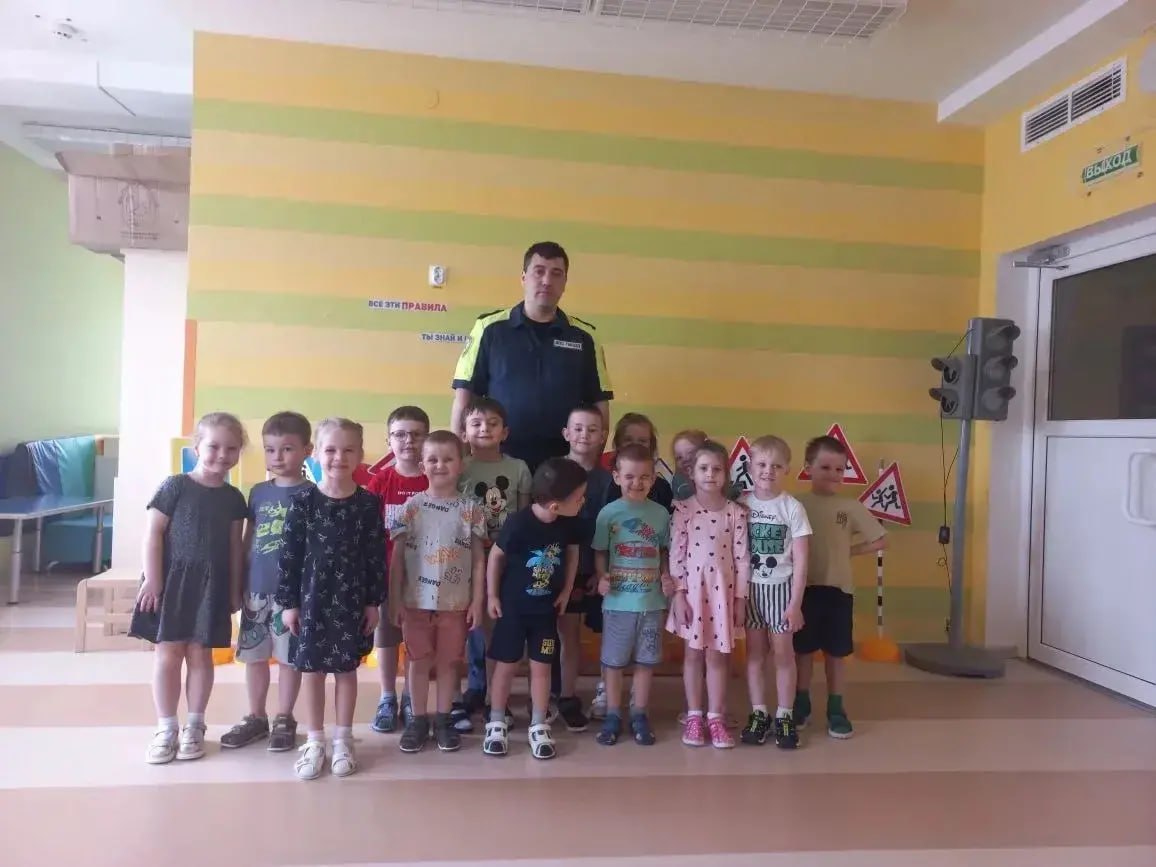 В практической части дети под руководством инспекторов разыграли дорожные ситуации: переход по «зебре», движение на зелёный сигнал светофора и выбор безопасного маршрута от дома до детского сада.