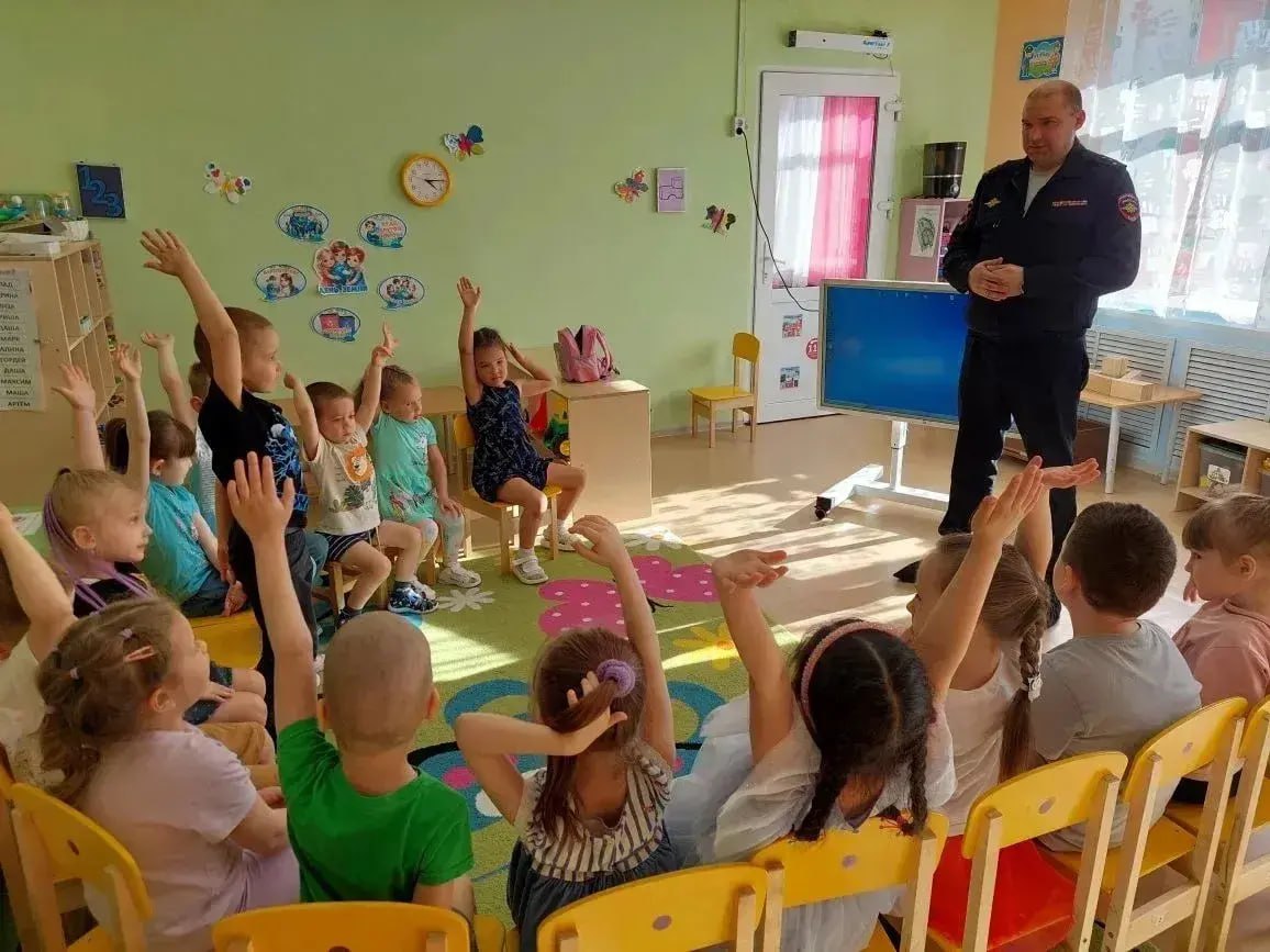 В детском саду «Улыбка» в Харпе прошло занятие по безопасности на дороге с участием сотрудников Госавтоинспекции