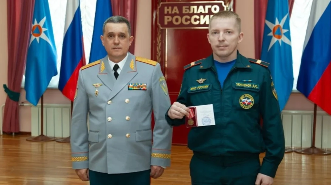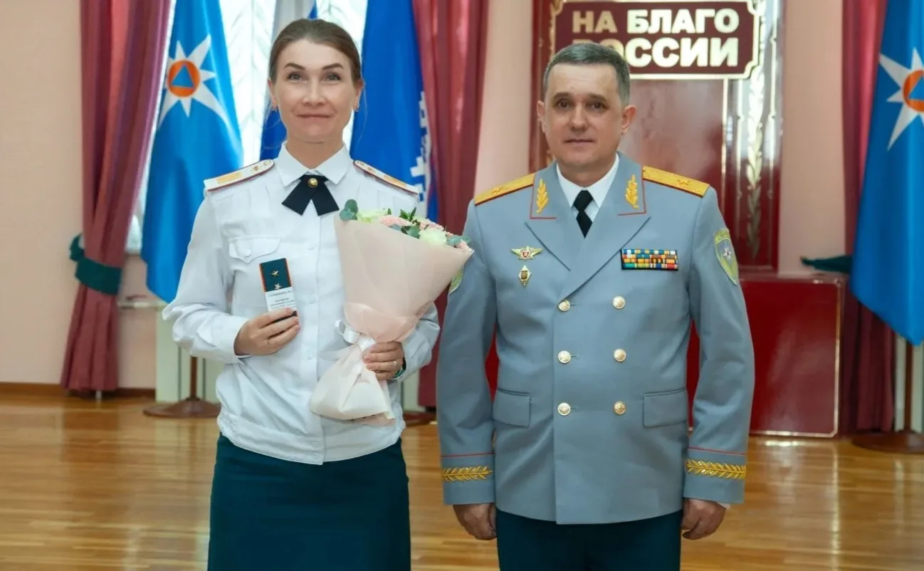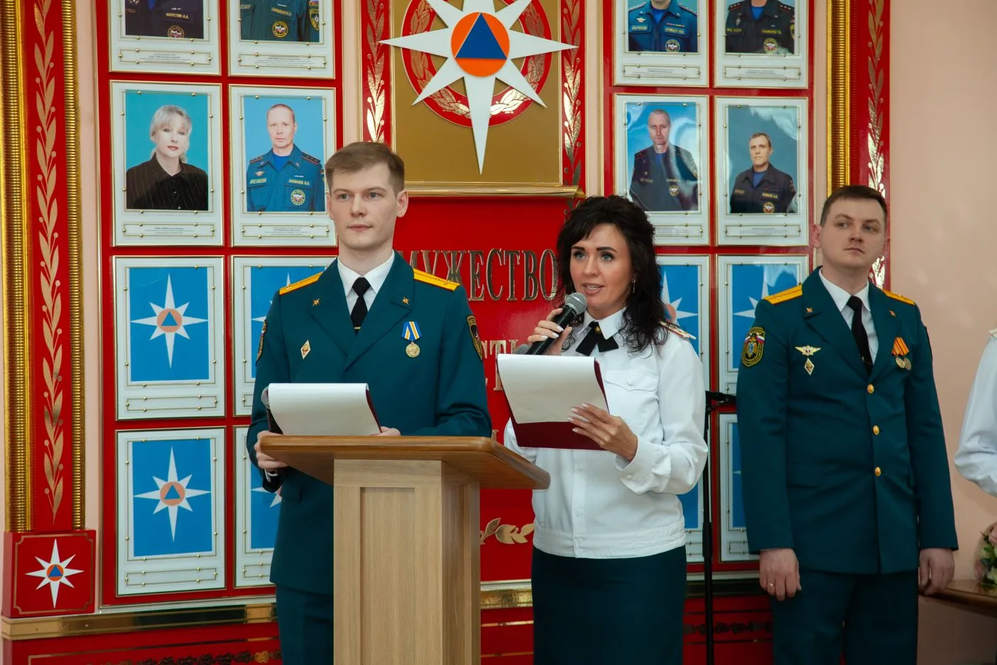 В завершение были вручены отличившимся сотрудникам ведомственные награды МЧС России и очередные специальные звания.