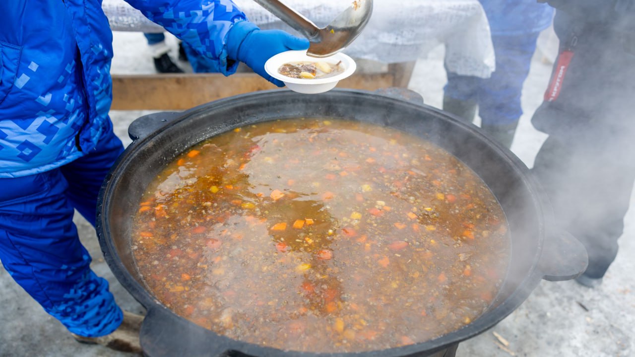 Белькович, казан, оленина и дым костра — в прямом эфире. Смотрите сами, как повара приготовят 500 литров шулюма!