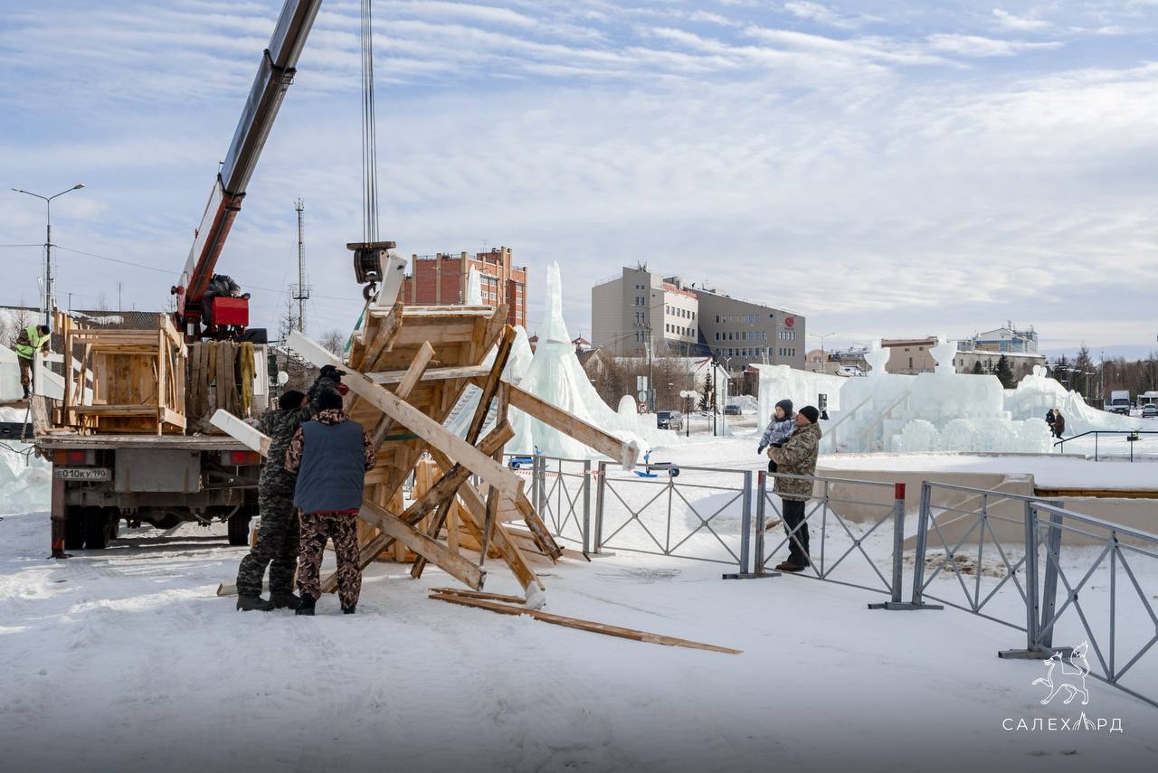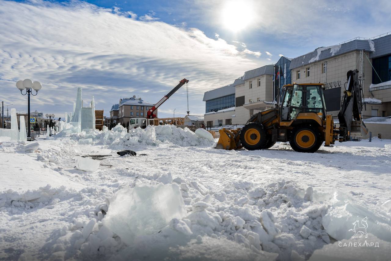 В Салехарде начался демонтаж ледового городка на площади у «Геолога».