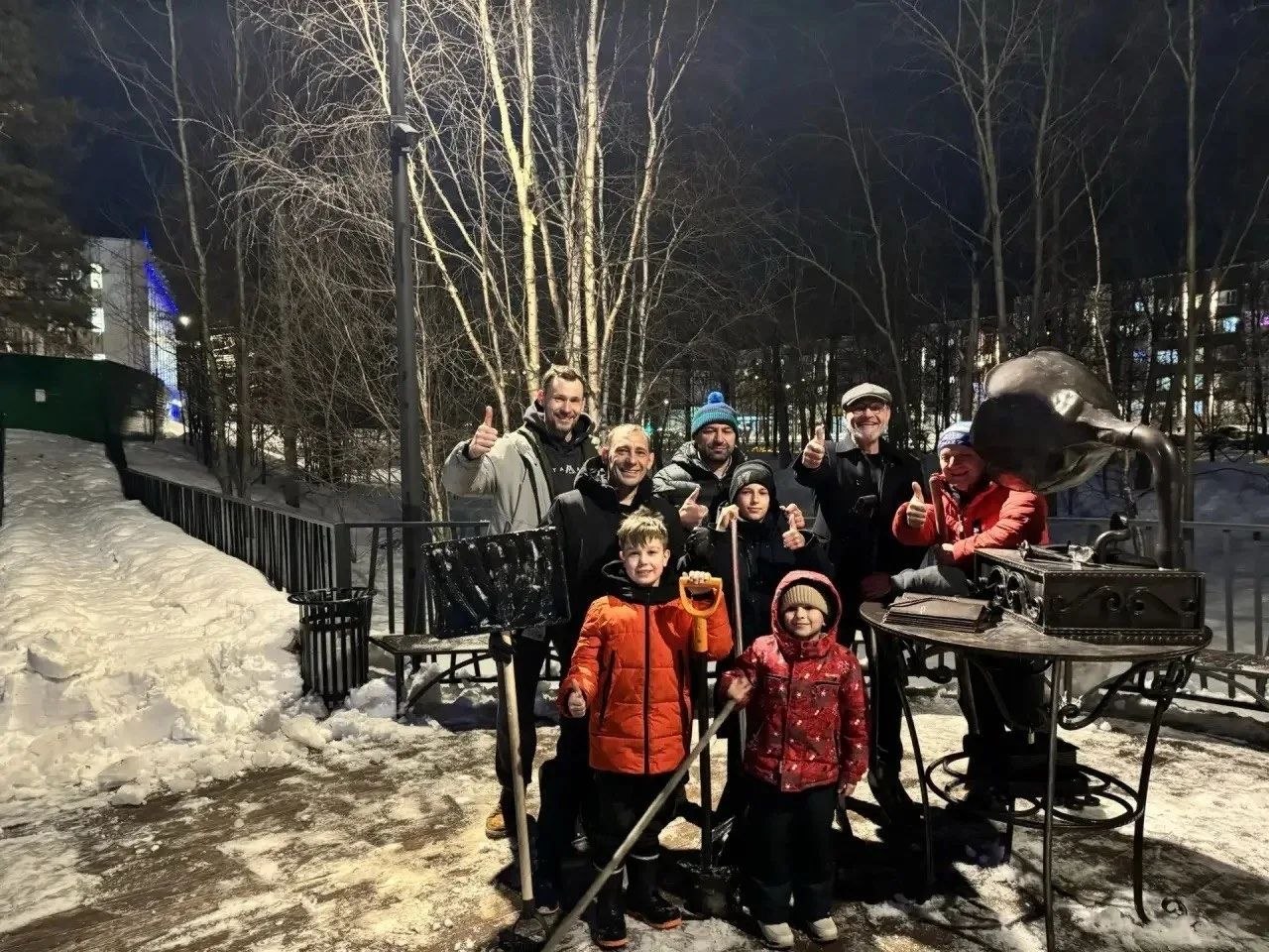 Члены Союза предпринимателей вместе с детьми почистили снег на территории вокруг артобъекта.
