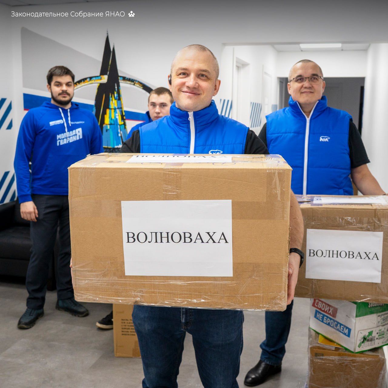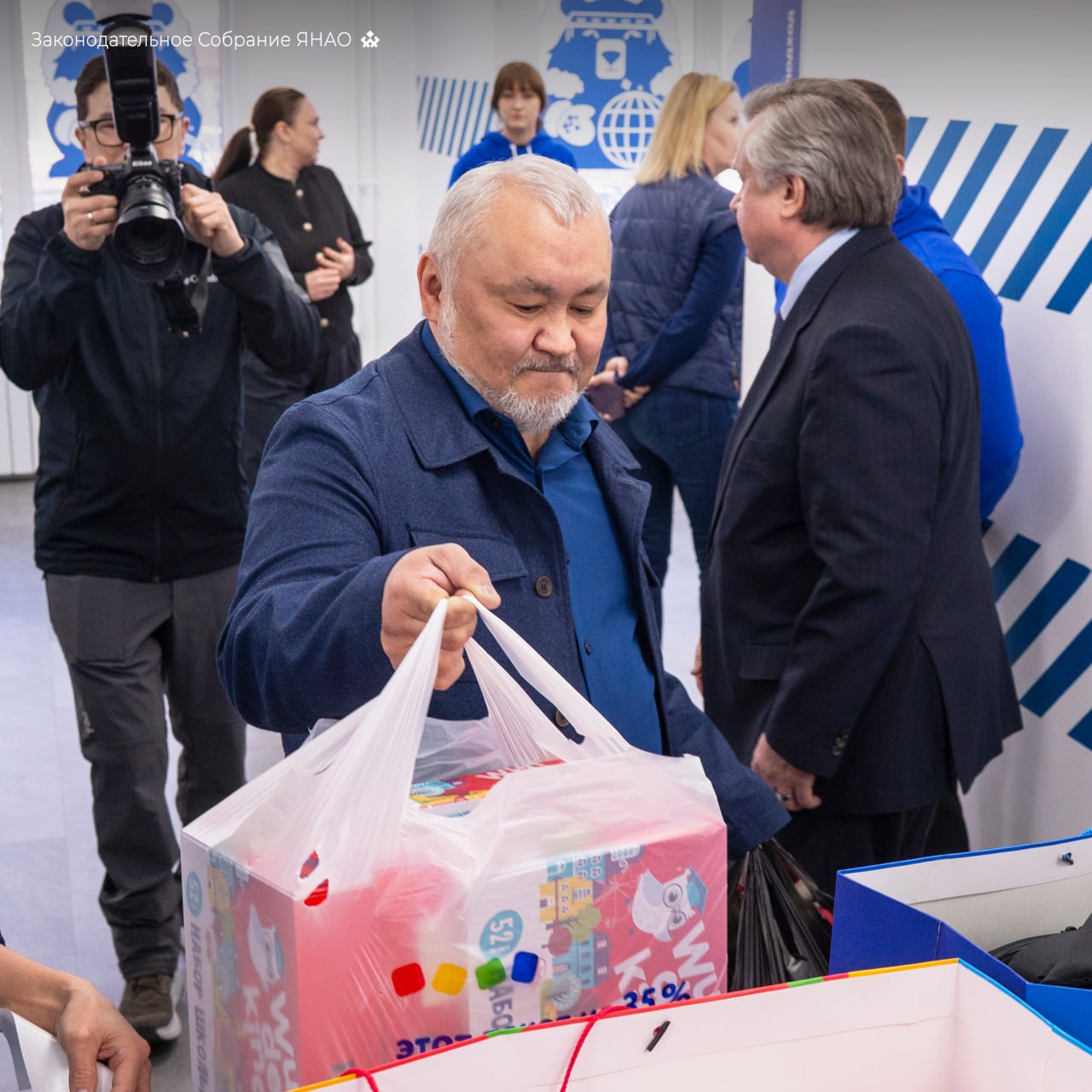 Глава региона Дмитрий Артюхов, спикер заксобрания Сергей Ямкин, депутаты и активисты вновь передали гуманитарную помощь жителям Волновахи