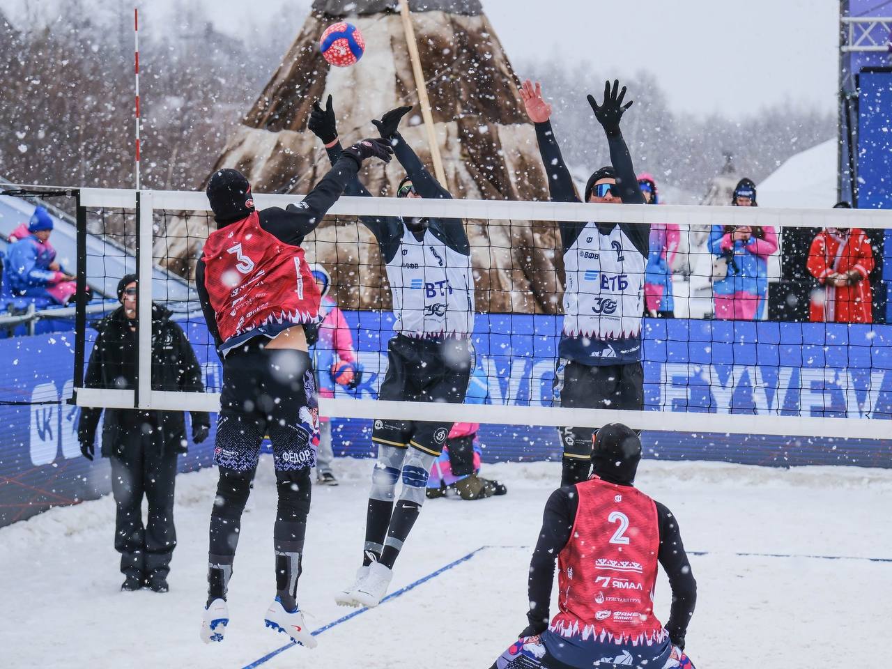 Место проведения финала чемпионата Росссии по волейболу не снегу — пляж реки Седэяха.