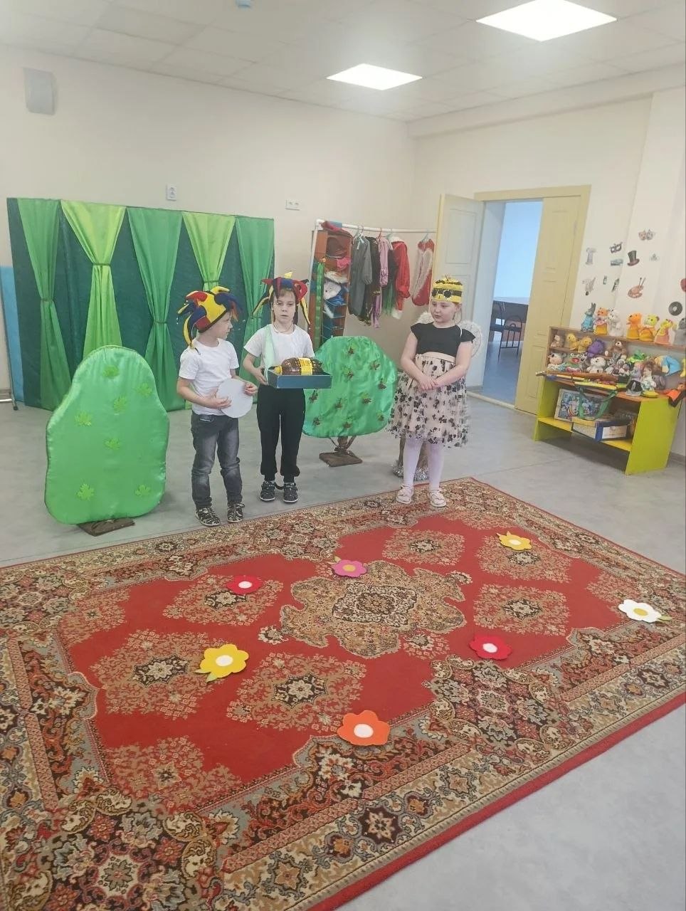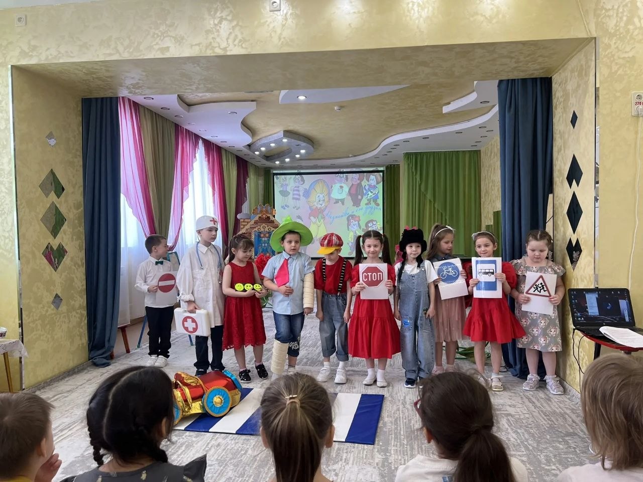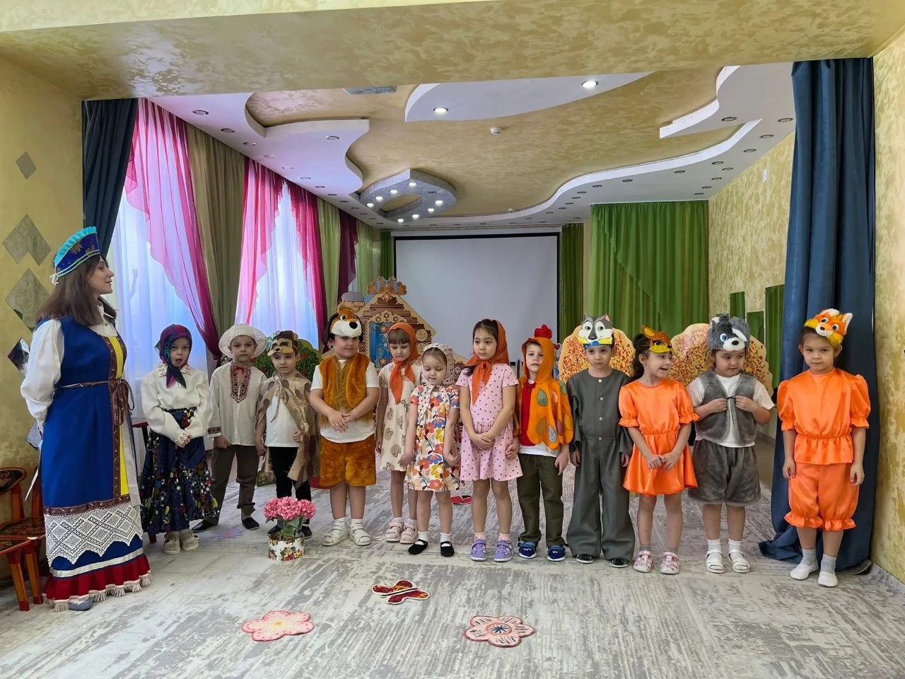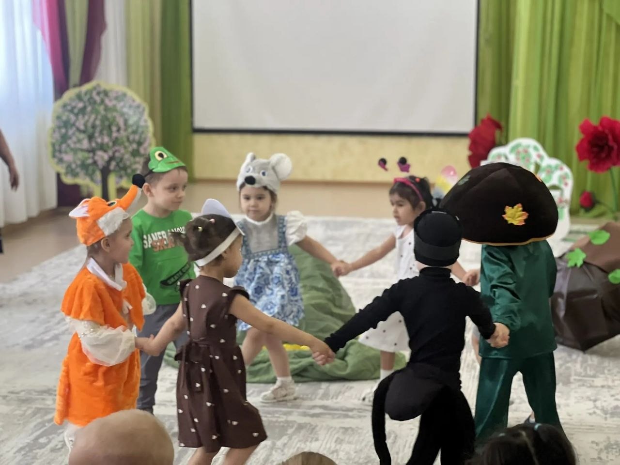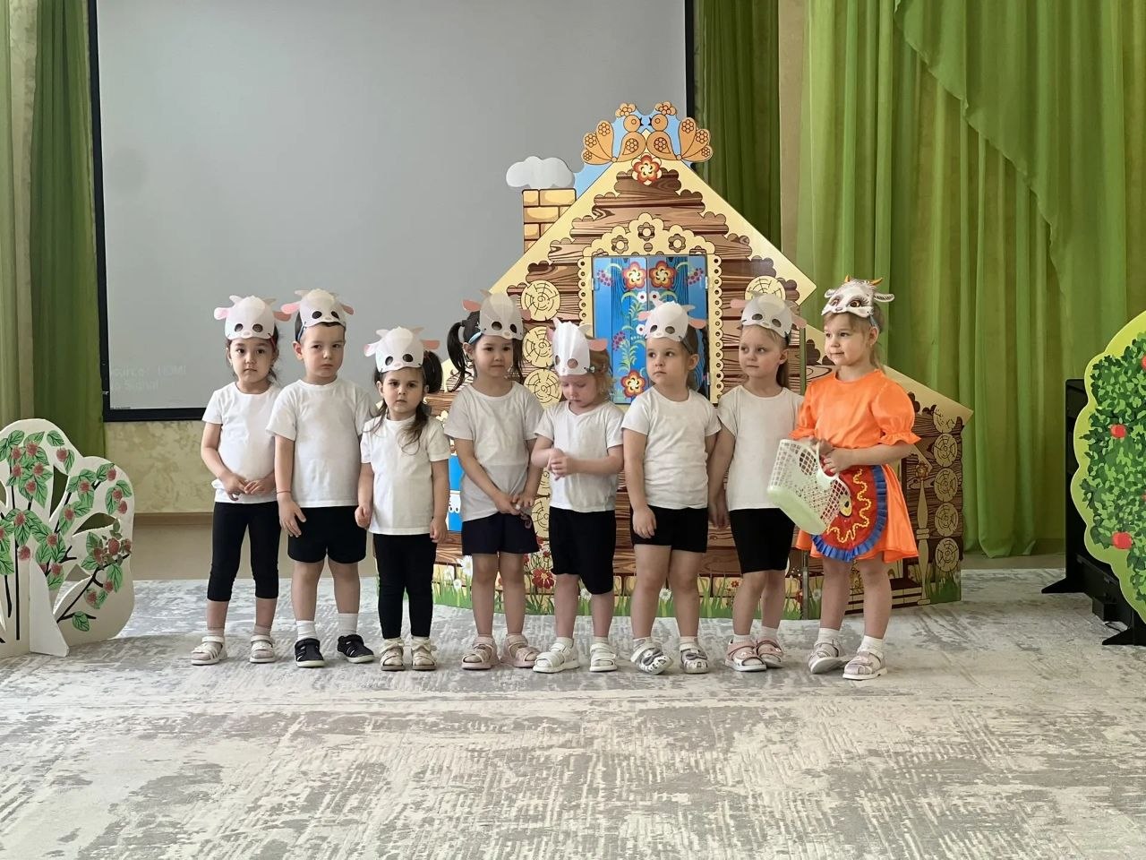 В новоуренгойском саду «Золотой петушок» прошли постановки: «Волк и семеро козлят», «Аленушка и лесные звери», «Дюймовочка», «Под грибом», «Большой переполох в маленьком царстве», «Милашка-букашка», «Приключения Незнайки». В них было задействовано 128 дошколят. А в донском детском саду ясли-саду «Теремок» состоялось представление «Муха-цокотуха» при участии 17 детей подшефного детского сада.