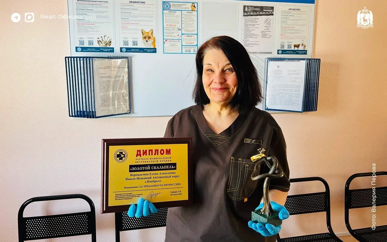 — Один из лучших ветеринаров страны работает в Ноябрьске. Елена Верещагина стала лауреатом премии «Золотой скальпель» в номинации «За преданность профессии».