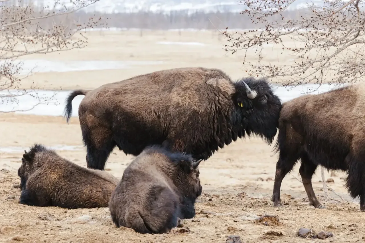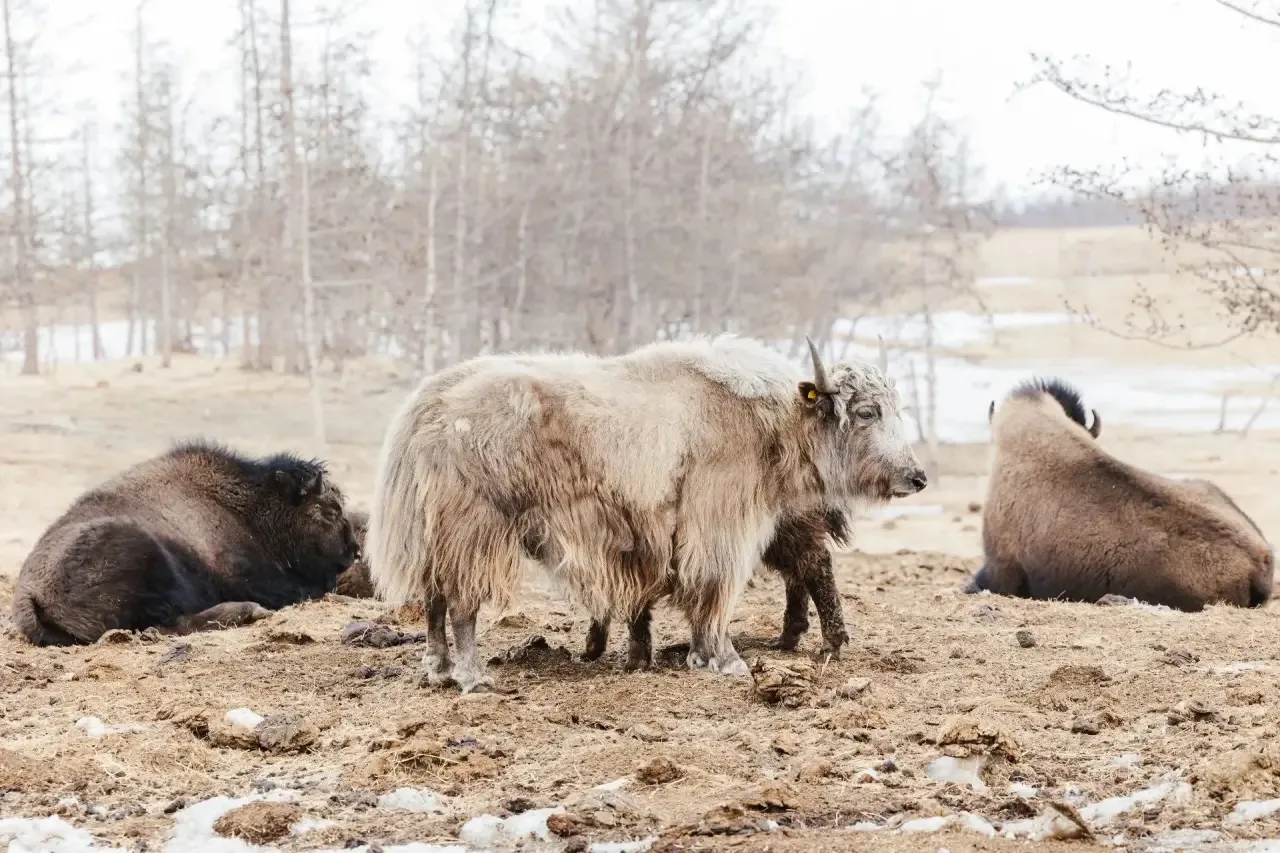 На кадрах — яки, бизоны, приобские лошади и овцы, которые обитают на территории парка. Суровые пейзажи Полярного Урала и бескрайняя тундра делают это место одной из самых живописных природных территорий Ямала.