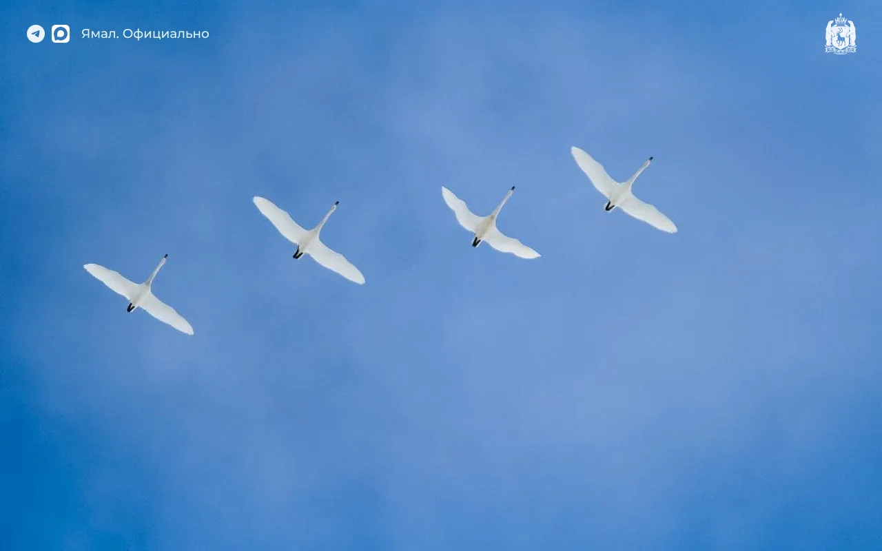 Четыре вестника весны, пролетающих над Ноябрьском, в объективе Марианны Яцыной