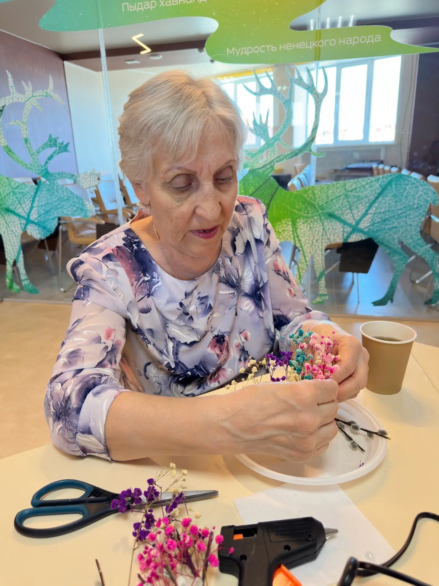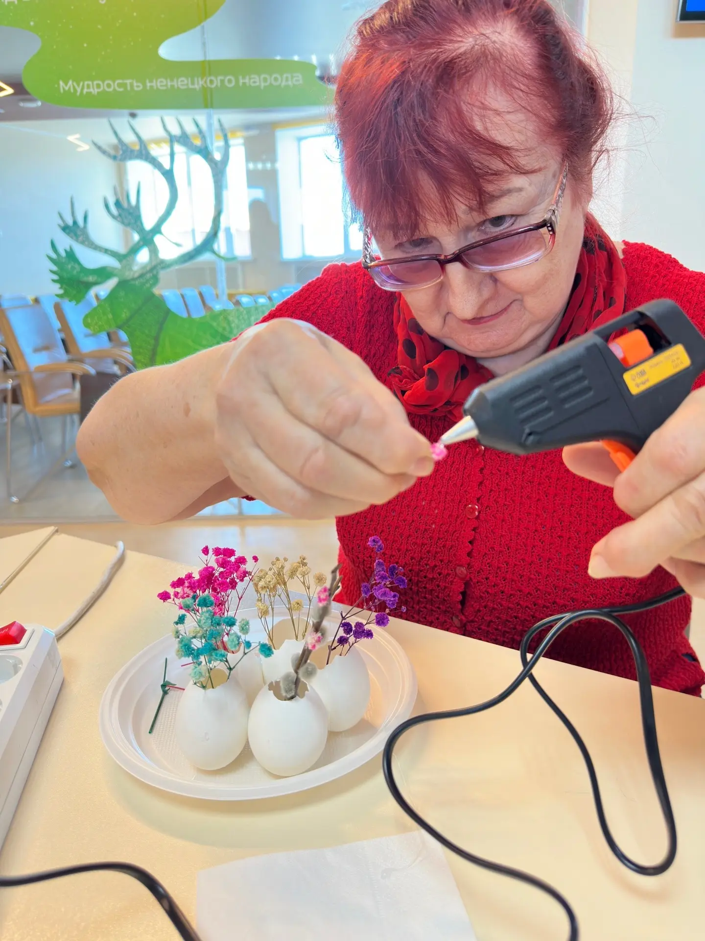 «Мастерство жить» - это серия творческих мастер-классов, где за одним столом встречаются разные поколения. Первым событием стал «Пасхальный свет» - люди старшего поколения за чашкой чая создавали украшения и поделки для праздничного стола, говорили по душам и делились жизненными историями. Площадку предоставила Национальная библиотека ЯНАО.