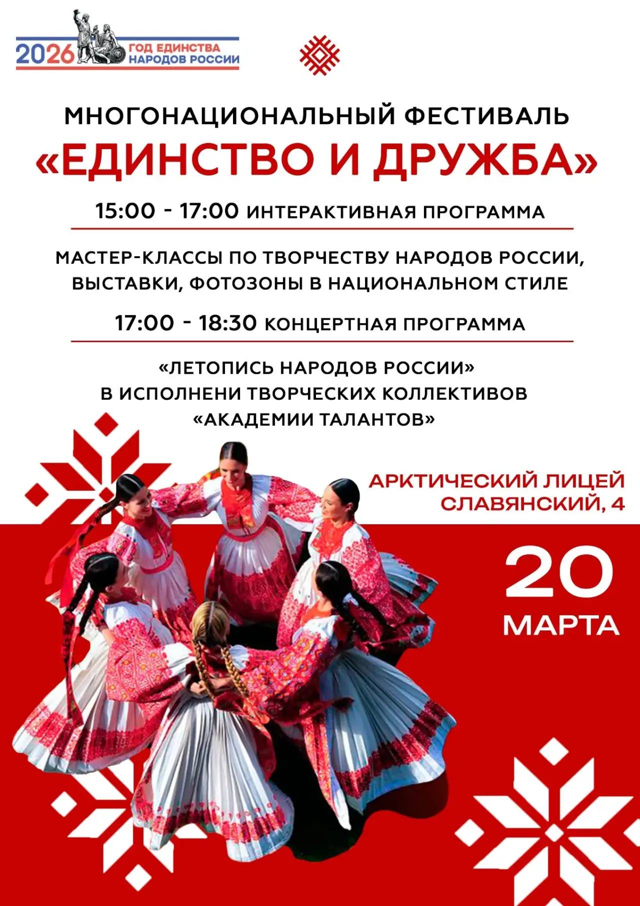 20 марта в Арктическом лицее состоится многонациональный фестиваль «Единство и дружба», приуроченный к открытию Года единства народов России.