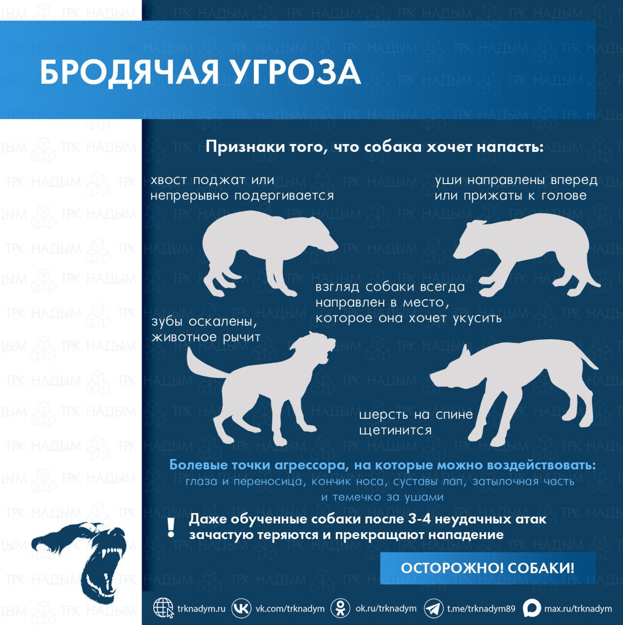 Если вы столкнулись с проблемой бездомных собак, не оставайтесь равнодушными. Сообщите в службу ЕДДС по номеру 112или в МКУ «Надымское» ул. Зверева, д.3/3, тел. 8(3499)53-07-00