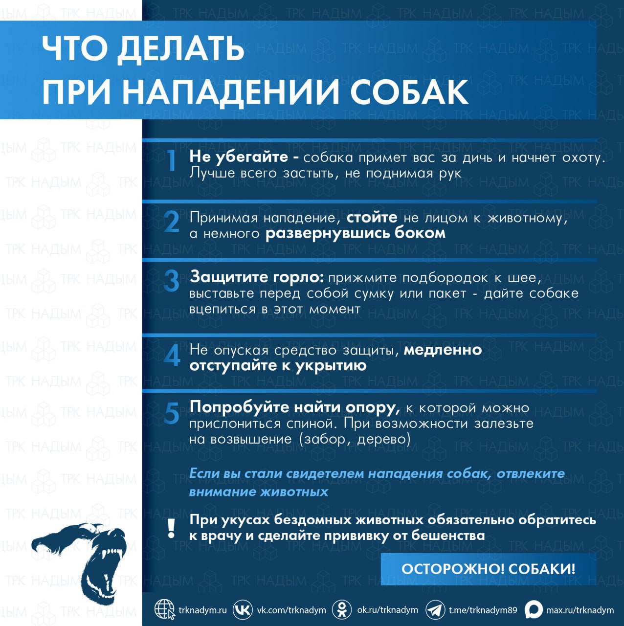 Чтобы избежать неприятных и опасных ситуаций, просим вас соблюдать правила поведения при встрече с бездомными собаками. Вся информация представлена на карточках. Сохраните их, чтобы не потерять, и поделитесь с друзьями и близкими