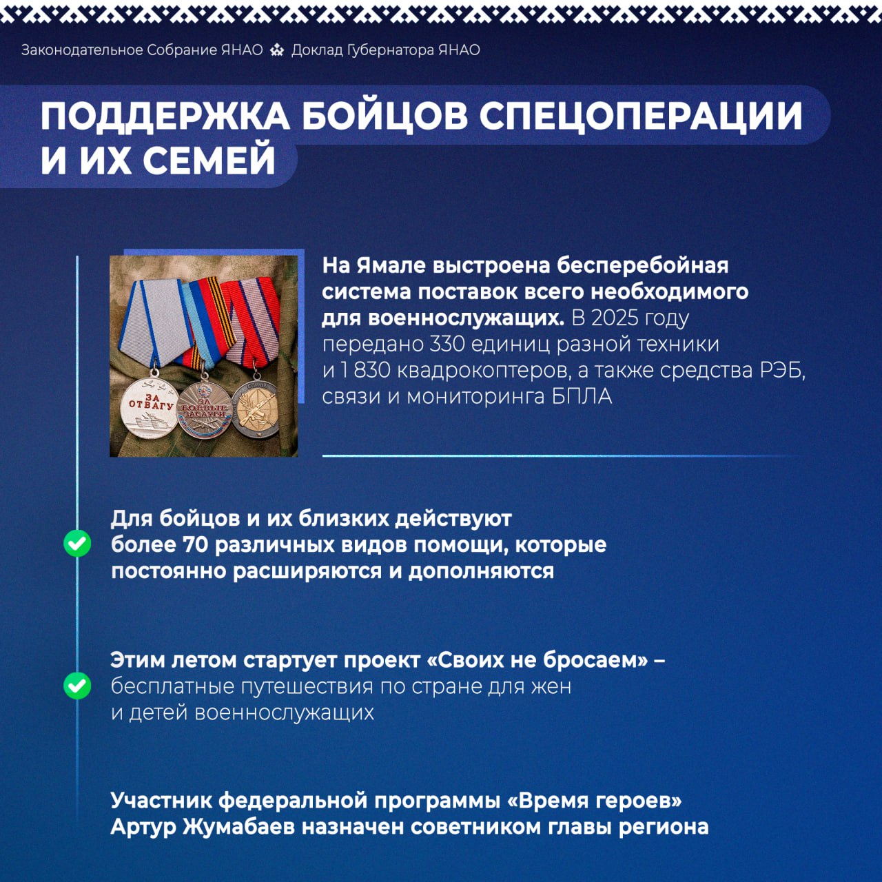 Доклад глава региона начал со слов благодарности и поддержки бойцам СВО, отметив, что на Ямале действует более 70 различных видов поддержки участников спецоперации и их семей, а главная задача на сегодня – возможность для них реализации себя в...
