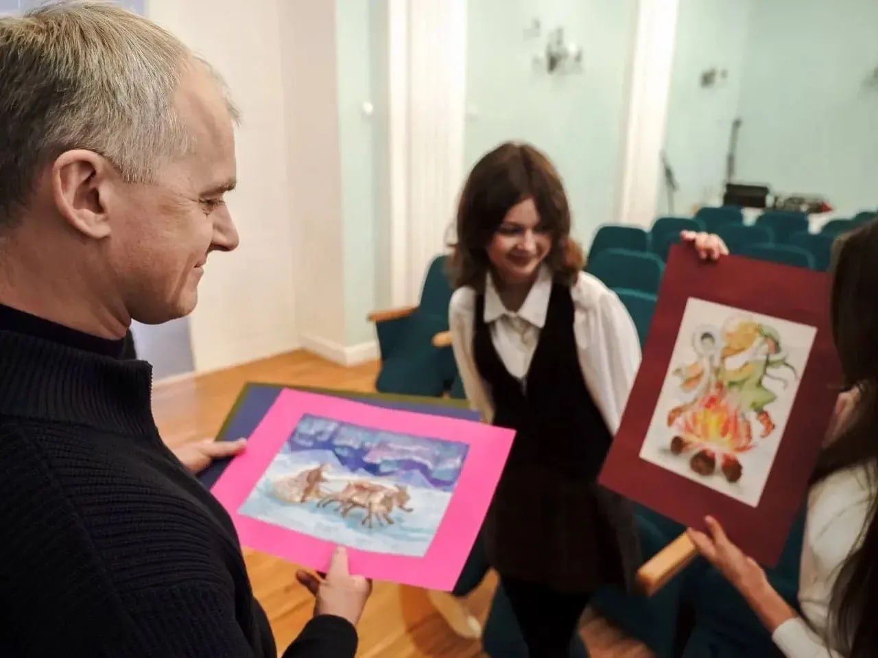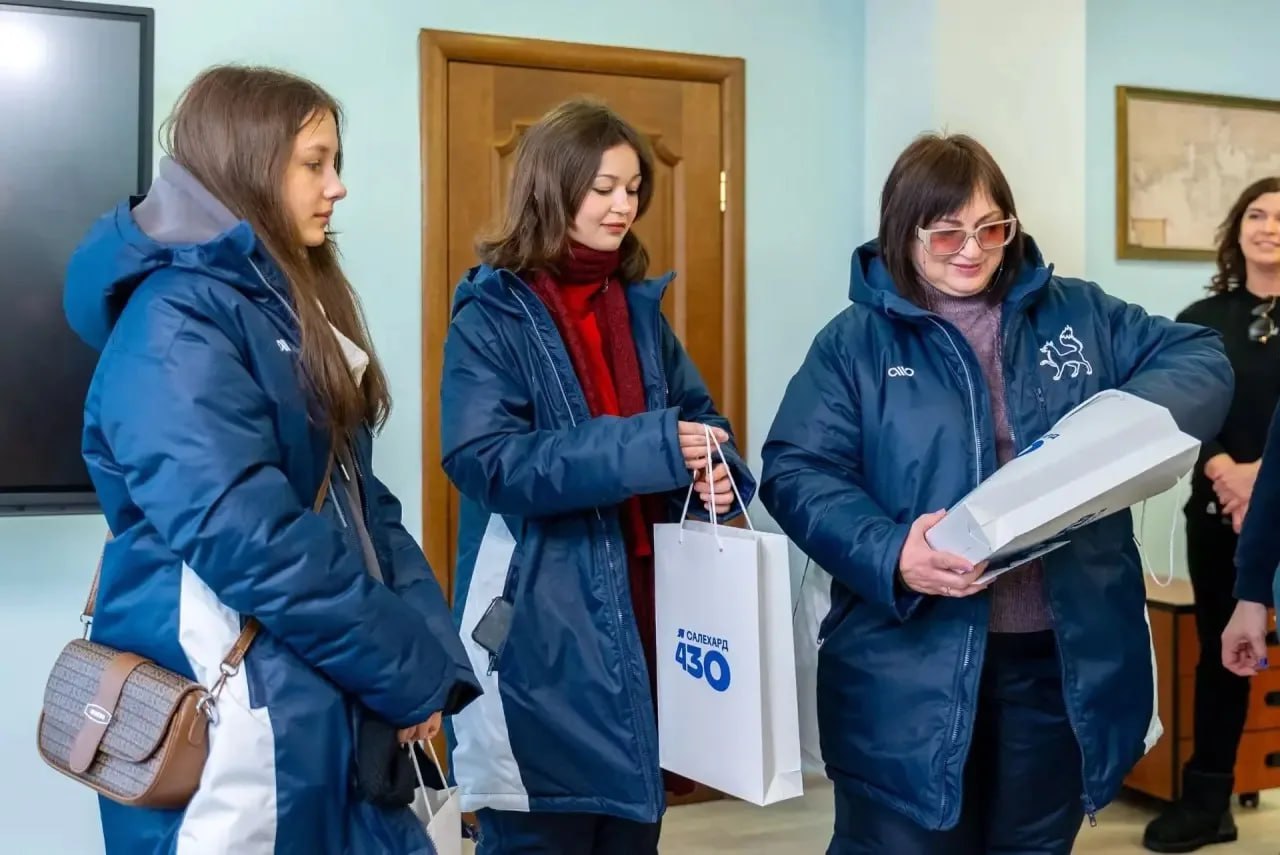 Наши гостьи уже встретились с главой города. Как отметил Алексей Титовский, именно рисунки девочек стали основой для праздничных открыток Дня оленевода в 2026 году.