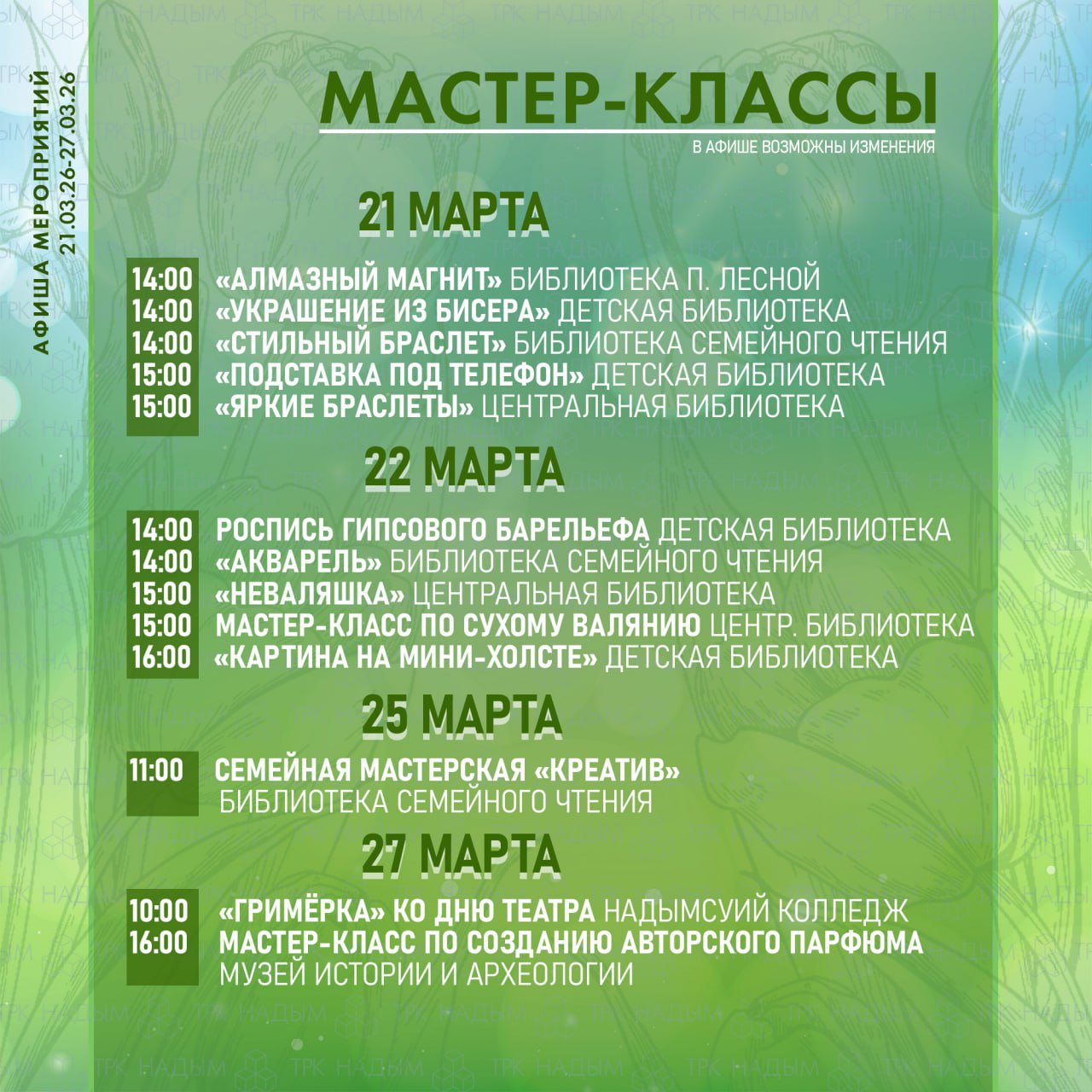 Что нас ждёт в эти выходные? Как всегда, очень много всего интересного: мастер-классы, выставки, спортивные мероприятия.