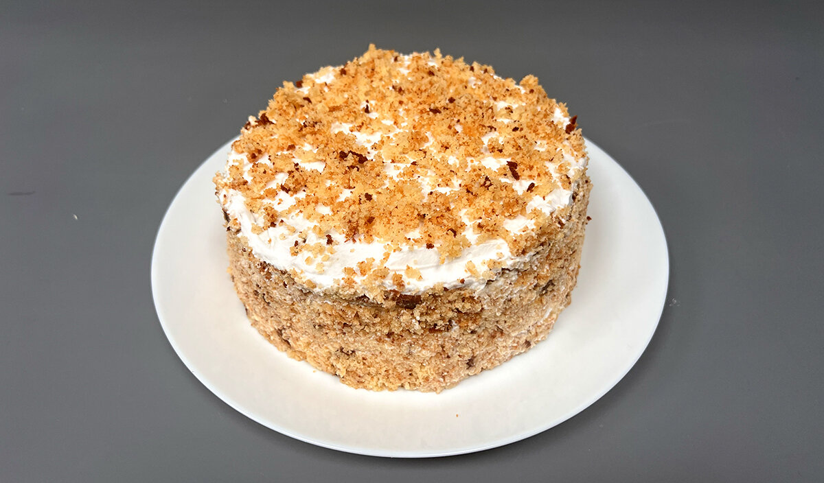 Торт собирается и украшается крошкой из остатков бисквита. Результат – потрясающе вкусный десерт, который радовал даже тех, кто не придерживается диет!