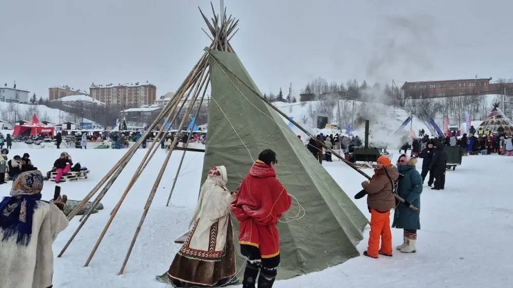 Тундровичка Любовь Пуйко, вырастившая 14 детей, провела мастер-класс по сборке чума от организации «Минлей».