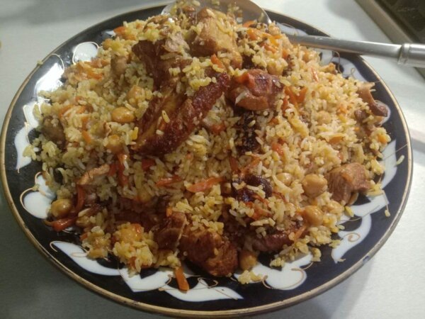 Вдохновение для создания оригинального плова пришло внезапно, когда в голове засело желание сделать что-то необычное. Главными героями стали свиные ребрышки, которые отлично сочетались с узбекским рисом лазер. На основе классического рецепта был приготовлен плов с ребрышками, индейкой, нутом и изюмом. Результат превзошел все ожидания – на ужин получился невероятно вкусный плов, от которого не осталось ни одной рисинки!