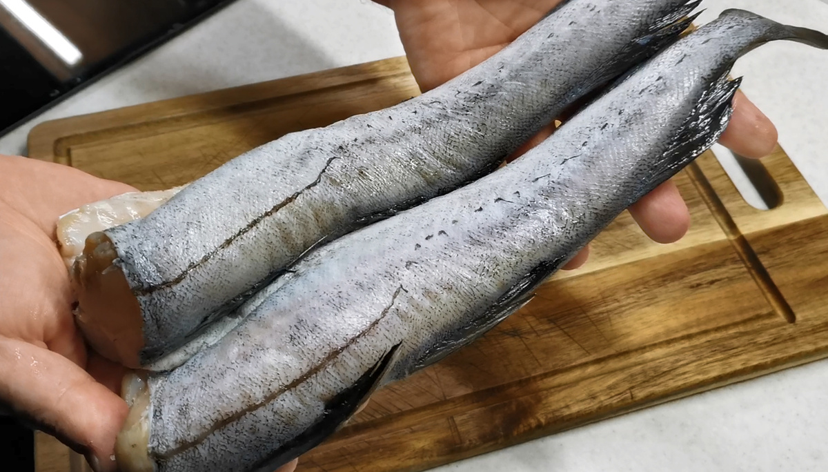 Начнём с того, что предварительно очищаем рыбу. Снимаем шкуру, удаляем черные пленки изнутри, а также подрезаем плавники и хвост. Хотя на самом деле плавники можно оставить, что избавит от кости после запекания, ведь их легко извлечь.