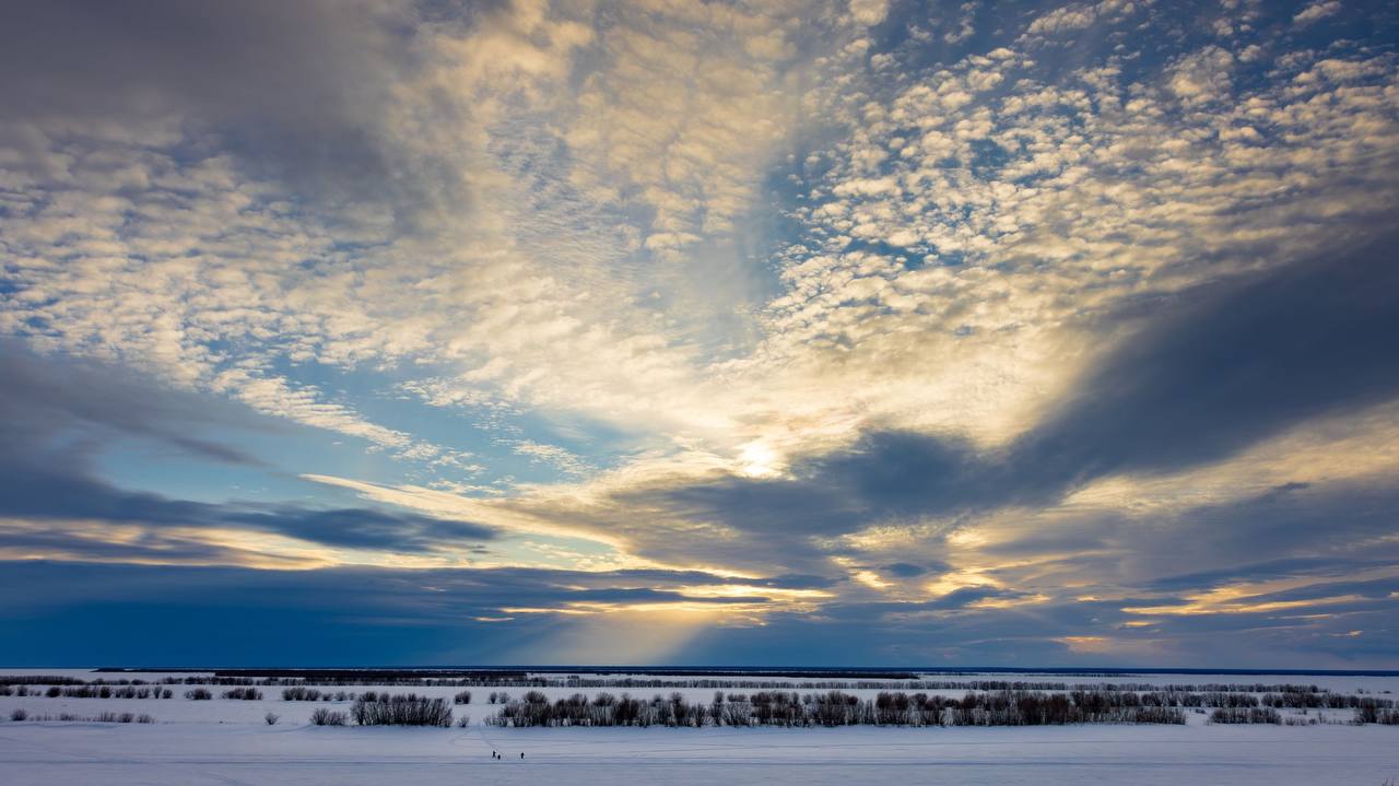 Весна в Салехарде — это момент, когда небо наконец открывается. Зимой мы словно живём под тяжёлым куполом: темно, пасмурно, света почти нет. Но приходит весна — облака рассеиваются, и появляется долгожданное солнце.