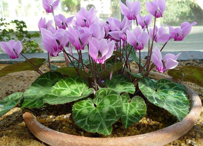 - Цикламен: Этот нежный цветок также предпочитает прохладу: зимой температура не должна превышать 14-15 градусов, а летом — 20-23 градуса. Уход за ним требует особого внимания: поливать нужно только мягкой, отстоянной водой. Недостаток влаги приводит к сбросу листьев, а переизбыток может вызвать гниение.