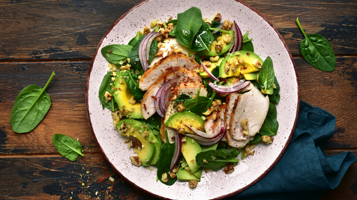 Салат «Вечерний» с нежным авокадо, обжаренной куриной грудкой и хрустящими орехами становится настоящим гастрономическим открытием. Острота красного лука и свежий аромат зеленого базилика придают этому блюду неповторимый вкус и яркий акцент.