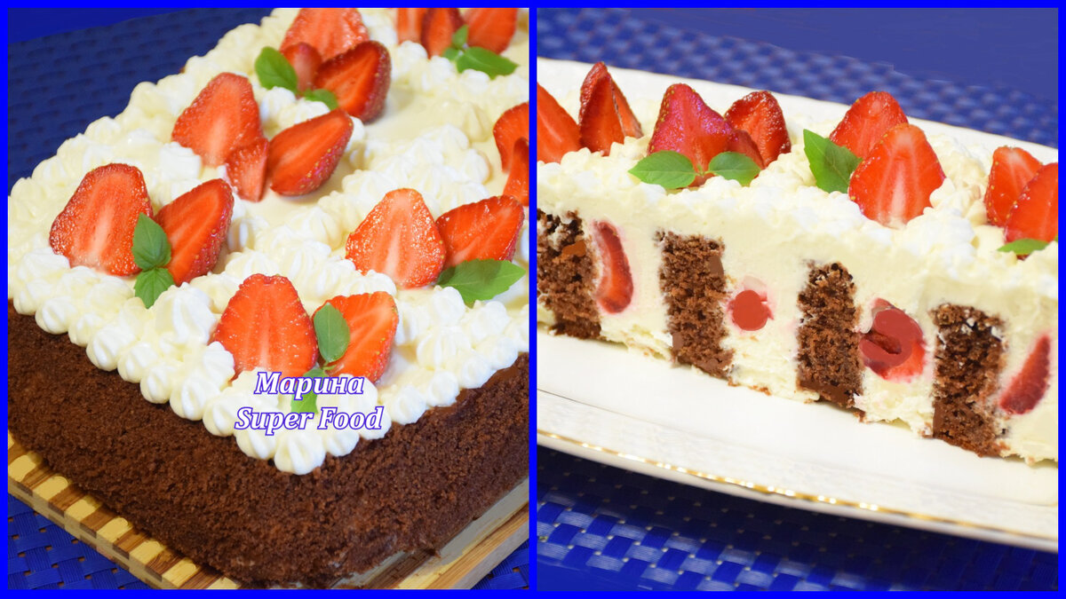Переместите торт в холодильник для пропитки на ночь. Перед подачей украсьте его свежей клубникой. Это поистине вкусный и воздушный десерт, который обязательно стоит попробовать!