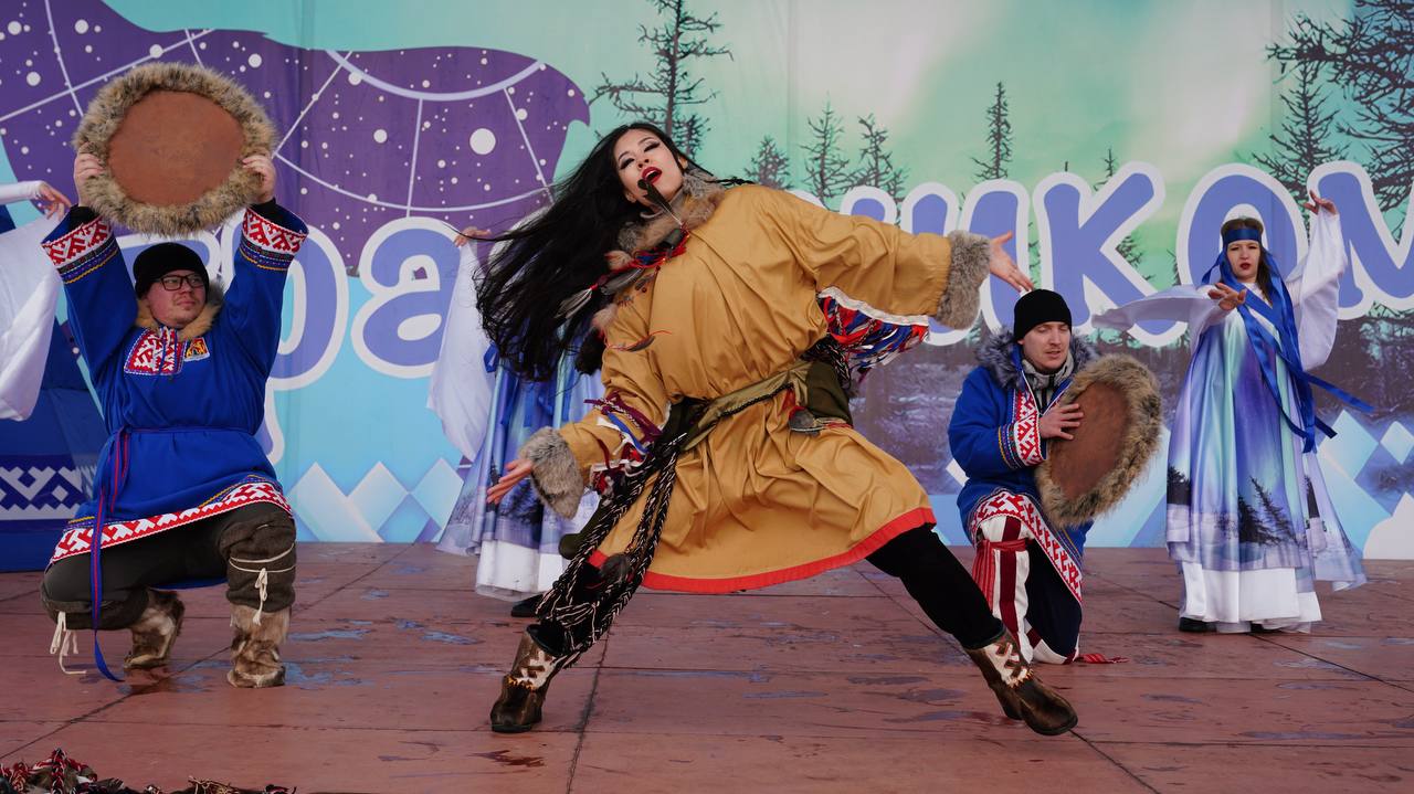 В Красноселькупе проводили зиму. На праздничной площади установили гостевые чумы, развернули торговые ряды, фотозоны с национальным колоритом, выставку-ярмарку и палатки с угощениями на любой вкус.