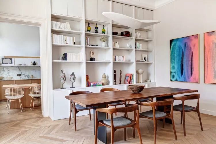 - Столовая-библиотека: полки с книгами не только наполнят пространство интеллектом, но и создадут уникальную атмосферу.