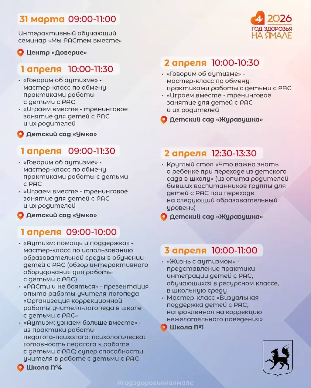 В Год здоровья в Салехарде пройдут мероприятия, посвящённые Всемирному дню распространения информации о проблеме аутизма.