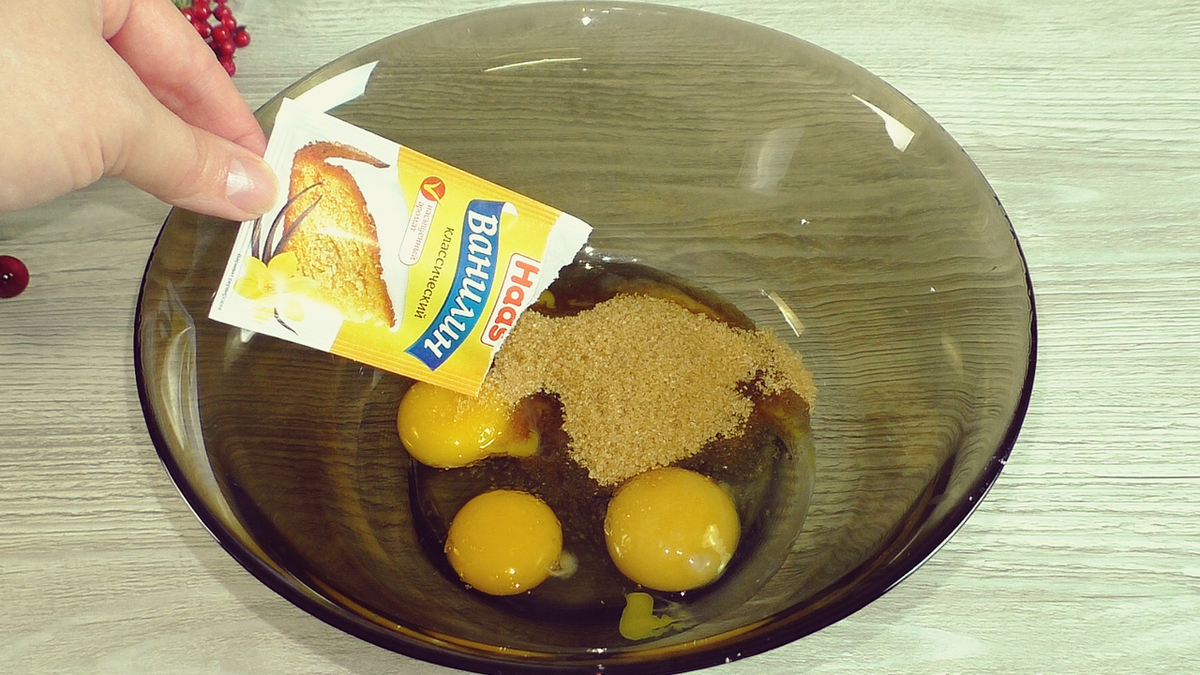 1. Взбить яйца с сахаром, солью и ванилином — можно использовать миксер, но и вручную получится отлично.