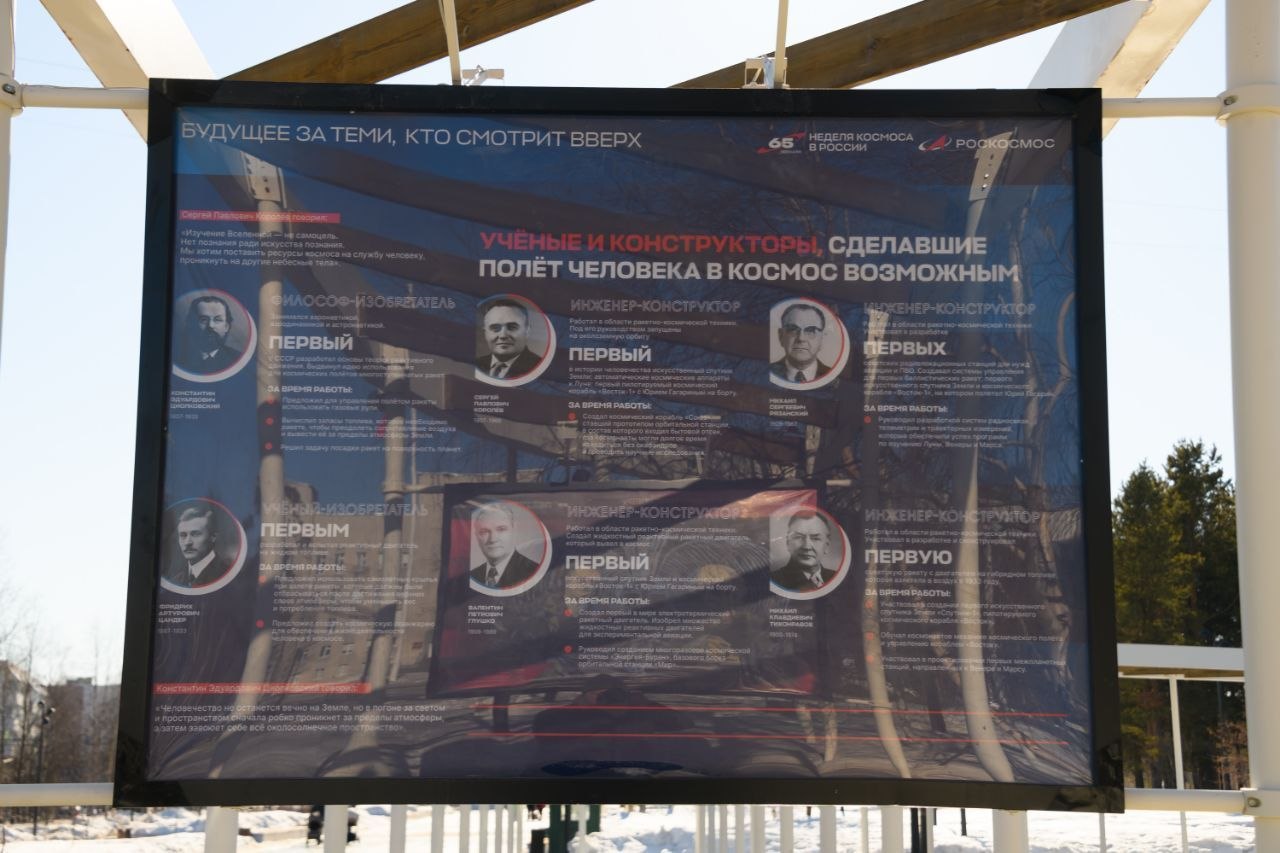 Обновили экспозицию на перголе, расположенной на центральной аллее города. Выставка приурочена к предстоящему Дню космонавтики.