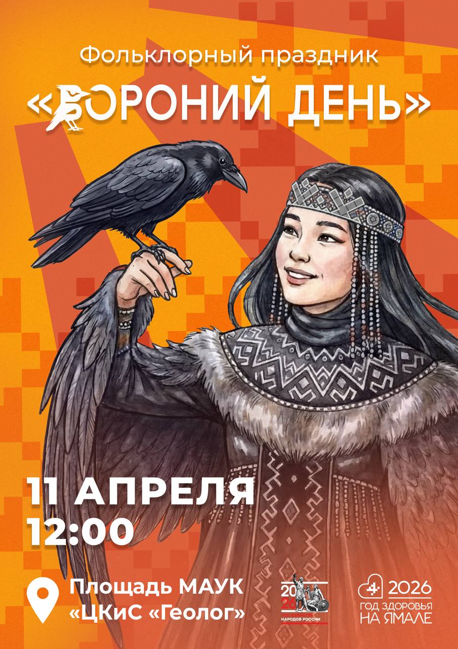 Салехард готовится встретить один из самых тёплых и символичных праздников народов Севера — Вороний день. Праздник пройдёт 11 апреля в 12:00 на площади ЦКиС «Геолог». По северным традициям ворона считается вестницей тепла и обновления.