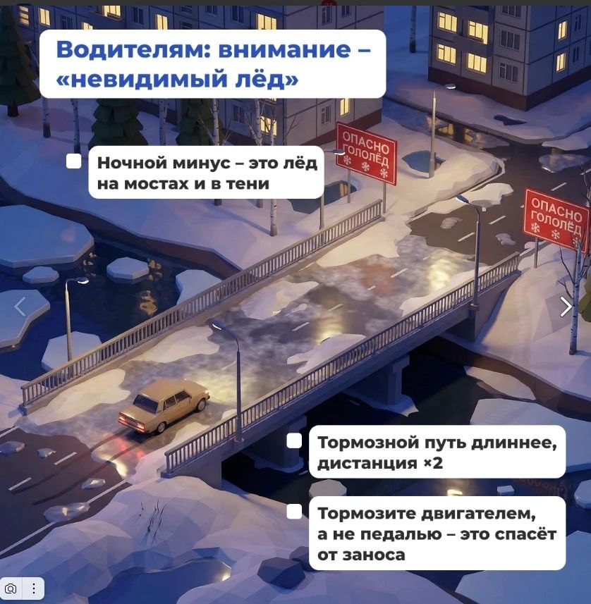 В карточках найдете главные правила безопасности на дороге в период «температурных качелей».