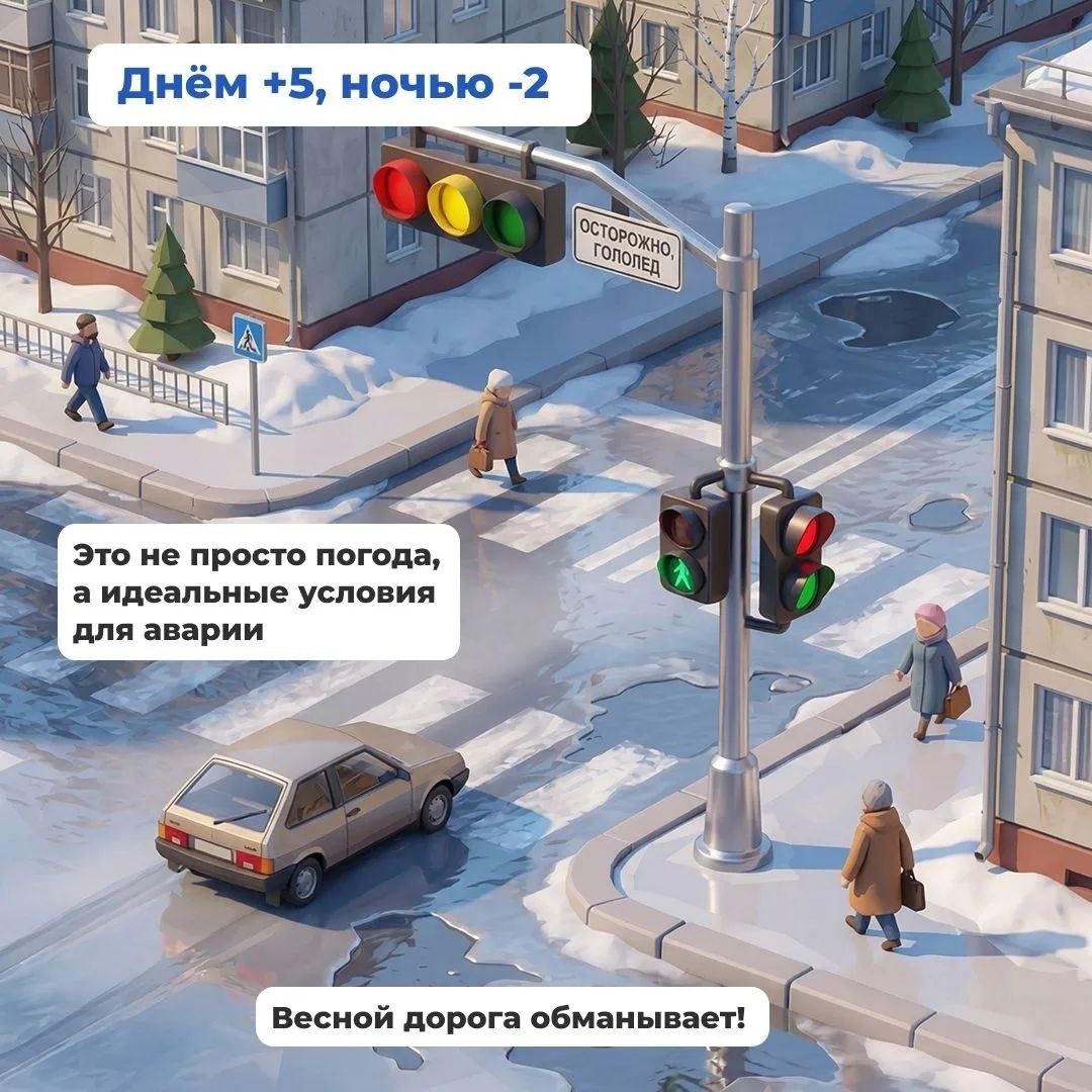 Днем солнце и лужи, а ночью – минус и «стекло» на асфальте. Именно такие перепады температур создают главную ловушку для водителей и пешеходов: образование наката и скрытой наледи.