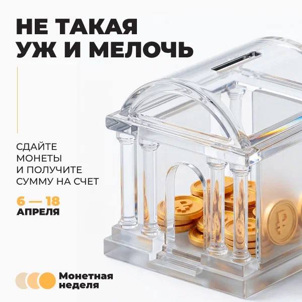 Самое время разобрать копилки и обменять монеты на банкноты или зачислить на банковский счёт: по 18 апреля проходит акция «Монетная неделя».