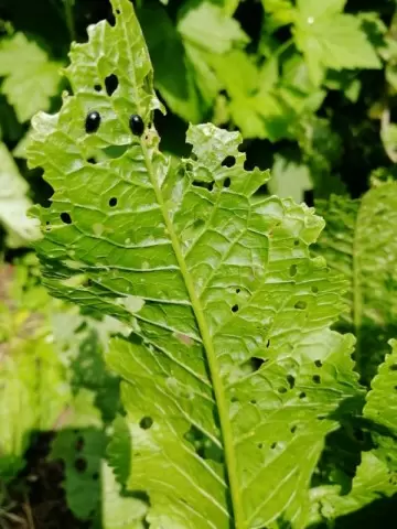 Хрен может не проявлять роста по нескольким причинам. Основная из них заключается в том, что садоводы активно используют его на кухне. Листья хрена идут на малосольные огурцы, корешки – в окрошку, а сами соединения с другими овощами часто квасят с добавлением хреновых листьев. Все это может препятствовать полноценному развитию корней. Когда нет достаточного количества листьев, корни не получают необходимого питания и не могут толсто разрастаться.