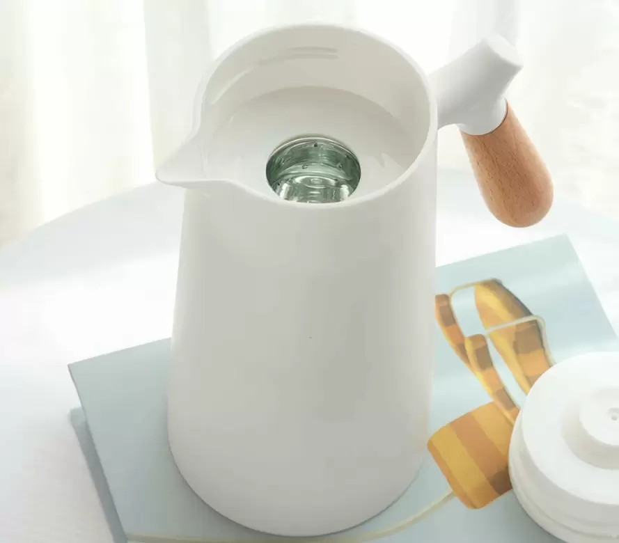 - Термос-кофейник – Объём 1 литр, пластиковый корпус с деревянной ручкой и стеклянной колбой помогут сохранить тепло вашего любимого напитка. Стильный дизайн украсит как кухню, так и офис.