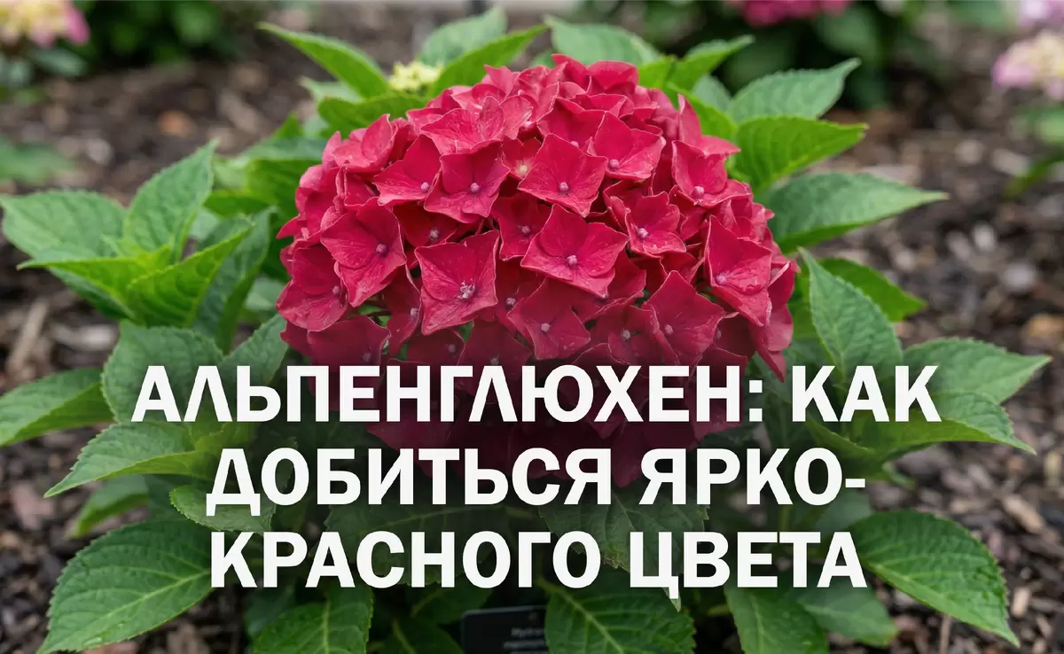 Гортензия Альпенглюхен — это крупнолистная разновидность (Hydrangea macrophylla), которая требует особых условий для идеального цветения. Чтобы достичь насыщенного красного оттенка, необходимо обеспечить правильный уровень кислотности почвы.