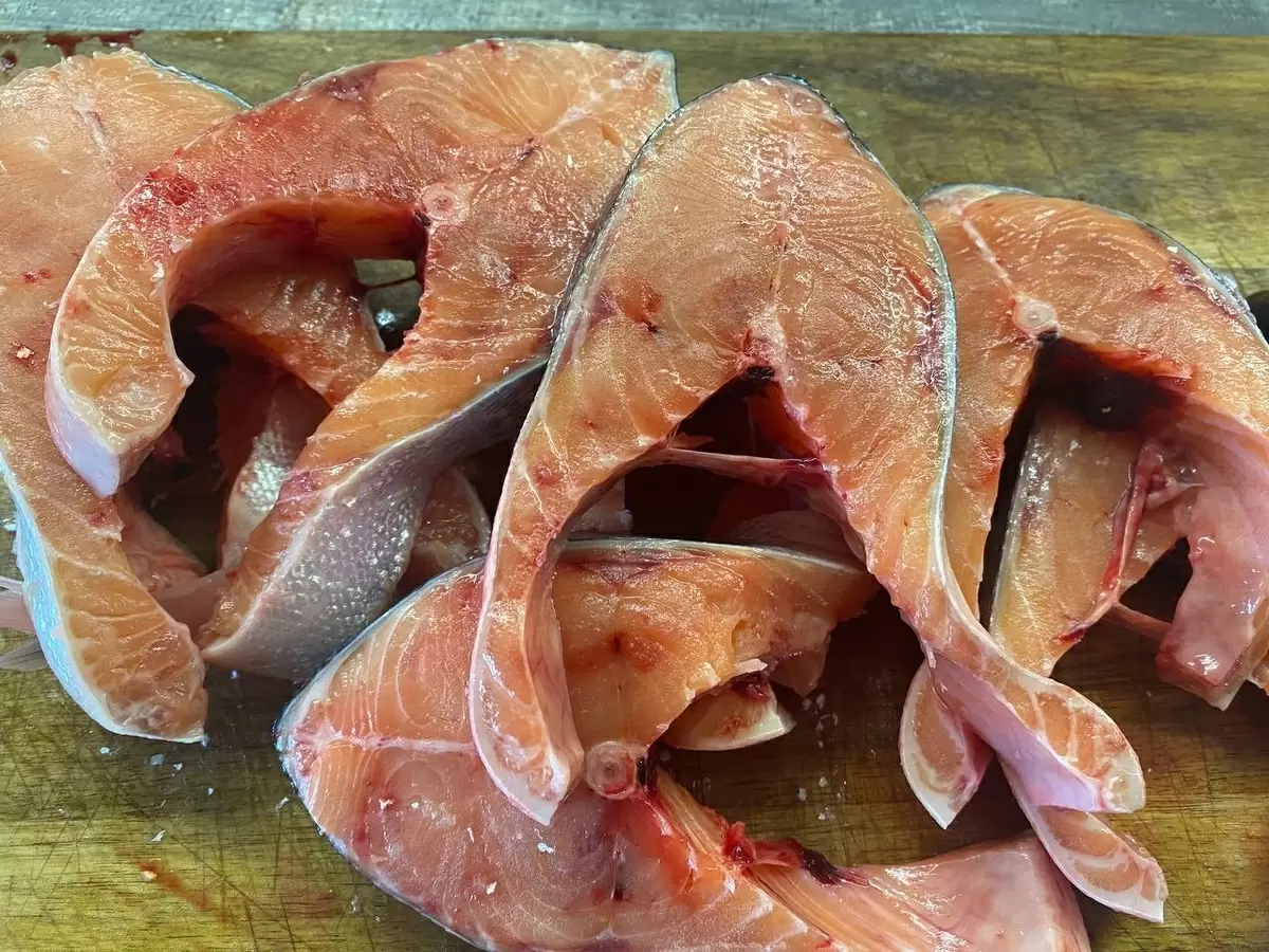 - Перед тем, как начать жарку, посолите кусочки рыбы.