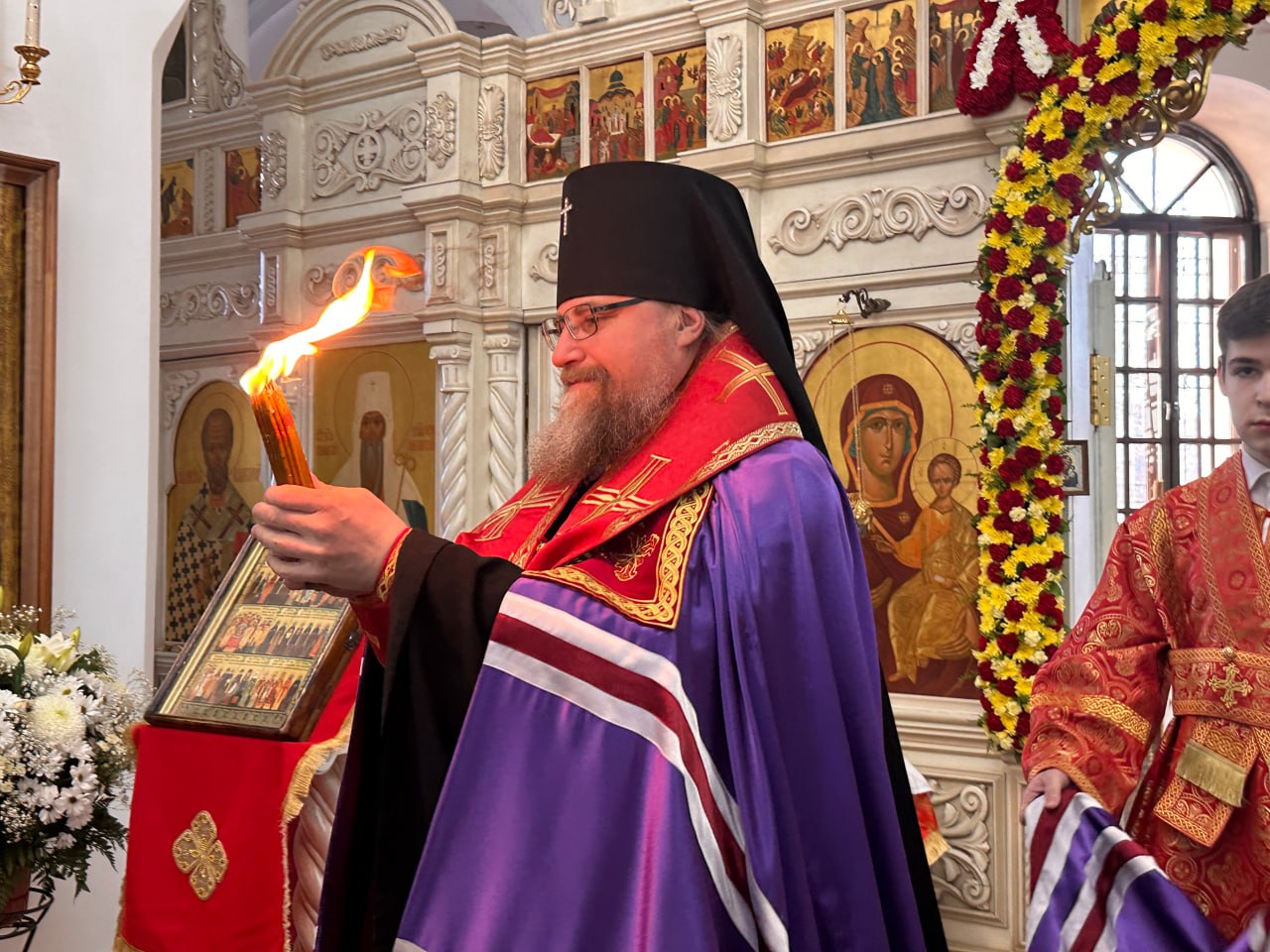 На Ямал доставили Благодатный огонь из Иерусалима. В храме святых первоверховных апостолов Петра и Павла святыню принял архиепископ Салехардский и Ново-Уренгойский Николай. Владыка передал огнь в лампадах священникам и верующим.