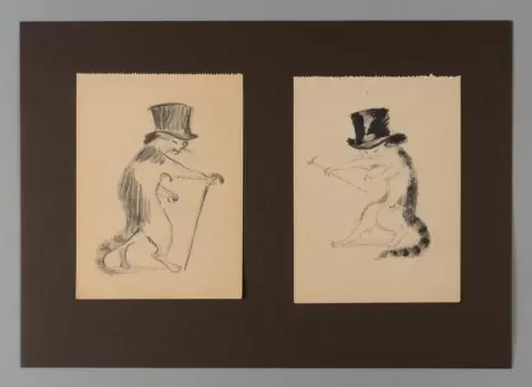 - Харкевич И. И. Коты в цилиндрах (1960-70-е гг.) — эта работа заставляет улыбнуться и привлекает внимание яркими акцентами.