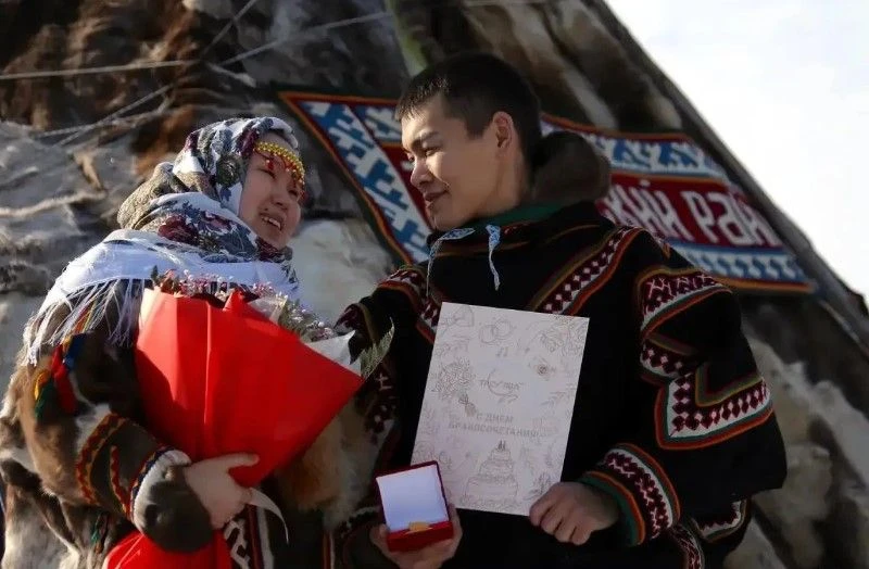 В округе стартовал Фестиваль национальных свадеб. Проект помогает парам провести церемонию с учетом старинных обрядов, музыки и костюмов своего народа. Первые свадьбы в национальном стиле уже прошли в Тазовском, Аксарке и Яр-Сале во время празднования Дня оленевода.