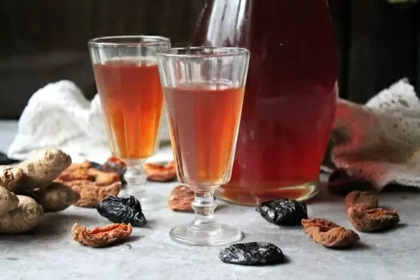 Начните с того, что в глиняный горшок поместите сухофрукты, затем влейте водку и плотно закройте крышкой. Если крышка не прочно прилегает, можно использовать пленку для дополнительной герметичности. Оставьте горшок в теплом месте на 8 часов. Далее подготовьте тесто, смешав муку, теплую воду и растительное масло. Замесите плотное тесто и дайте ему отдохнуть в пакете в течение 10 минут.